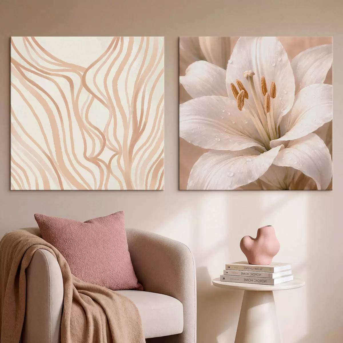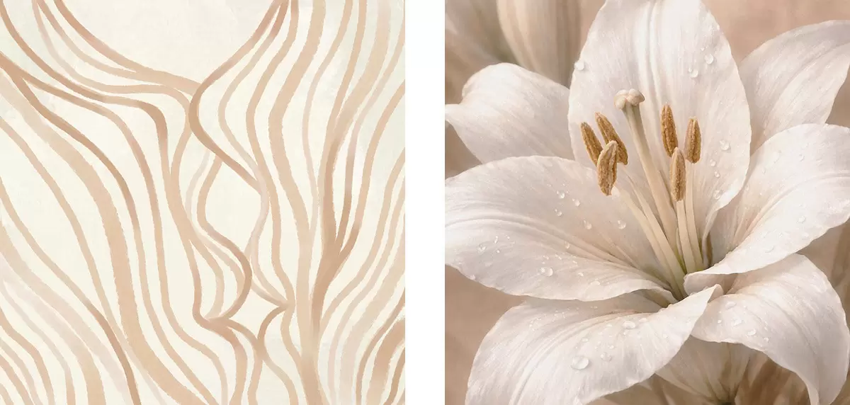 murales Díptico con flores y formas abstractas m30236