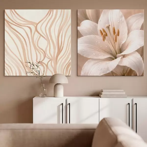 Hay tres tipos de material disponibles para pedidos: Lienzo Económico - material denso y duradero para impresión digital, idéntico al lienzo de pintor, superficie impermeable, reproducción realista de los detalles, material de grano medio. Lienzo Premium - la textura se asemeja a la de un lienzo de pintor (pequeños hilos entrelazados). Reproducción suave y detallada de la imagen sobre una superficie mate. Eco-Premium - tejido 100% algodón de alta calidad. Gracias a las fibras naturales de algodón, el material es duradero y resistente al desgaste. Excelente reproducción del color y el detalle.