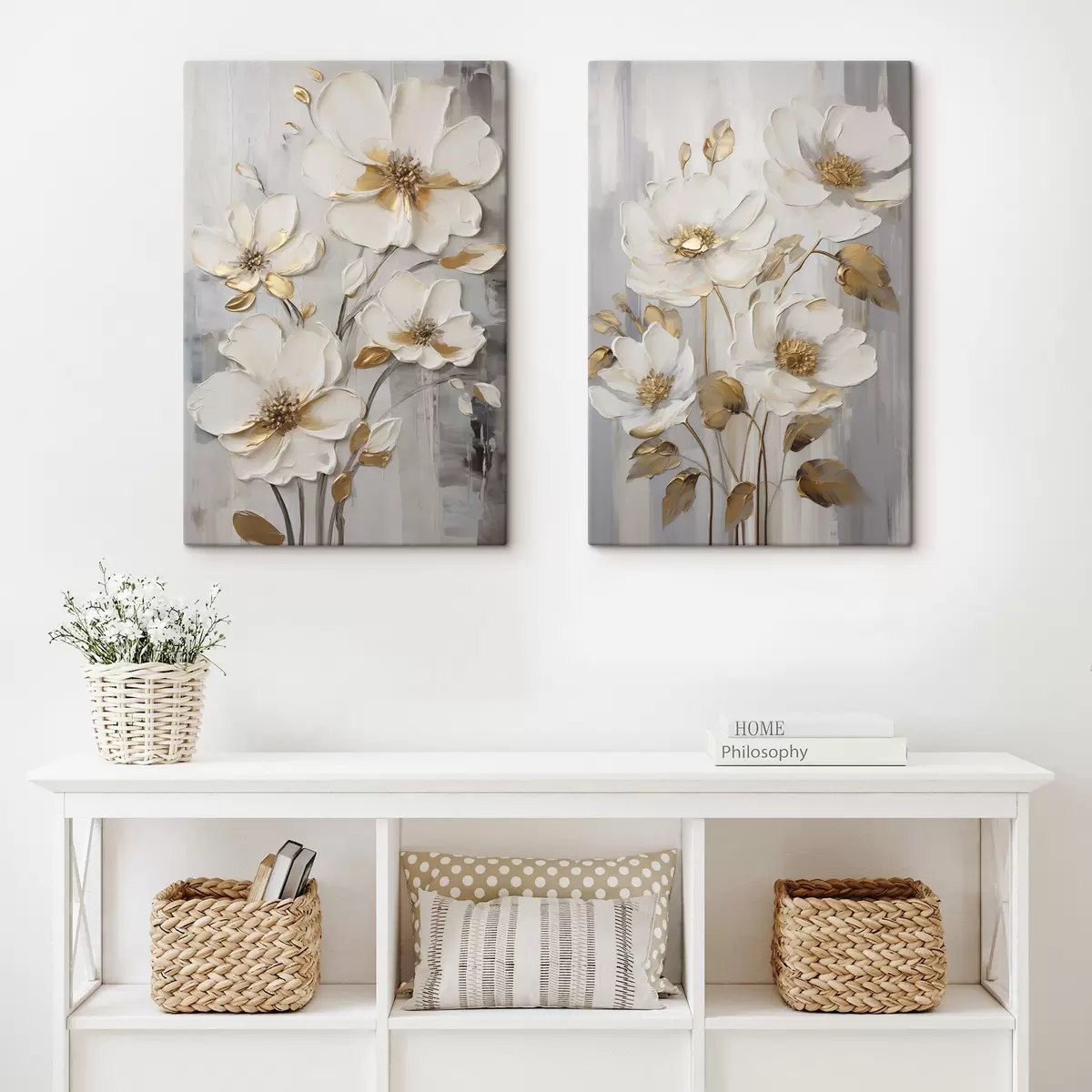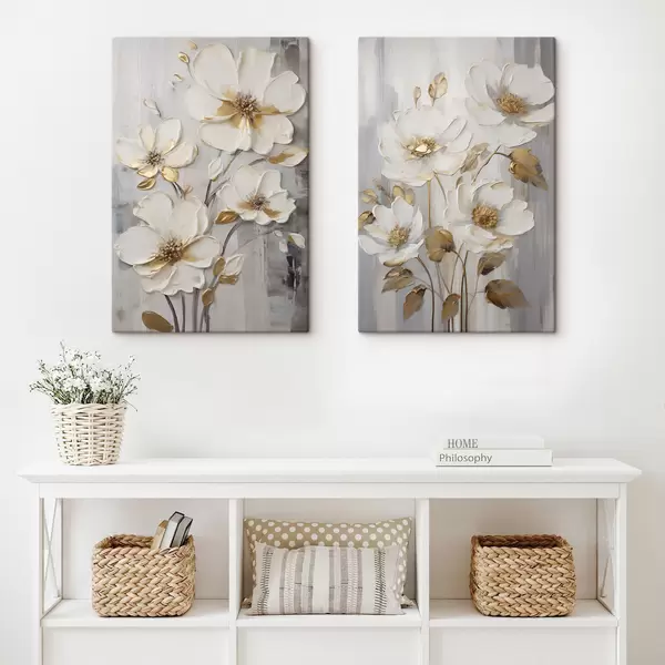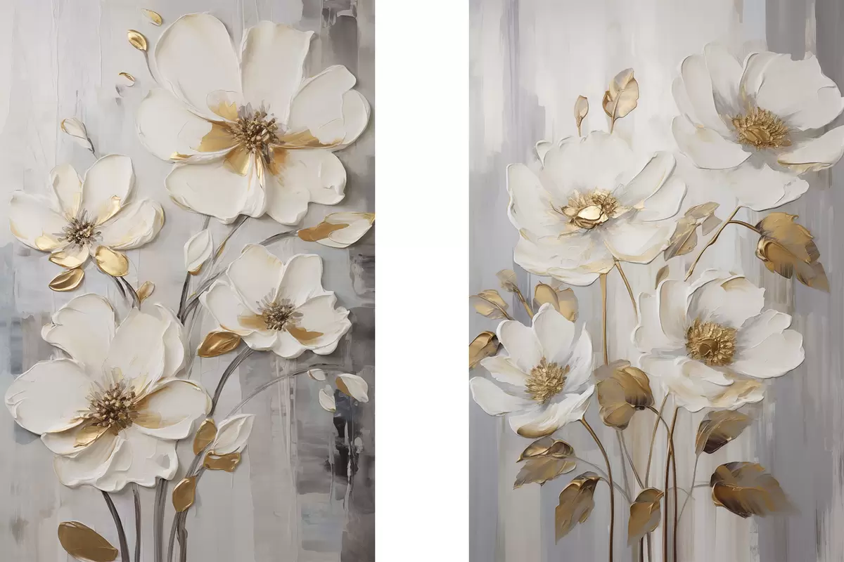 murales Flores blancas con toques amarillos sobre un fondo texturizado m30311