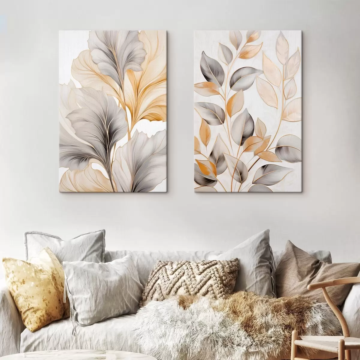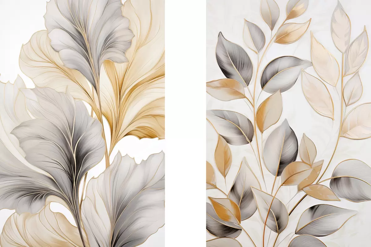 murales Hojas grandes y translúcidas en tonos grises y amarillos m30323