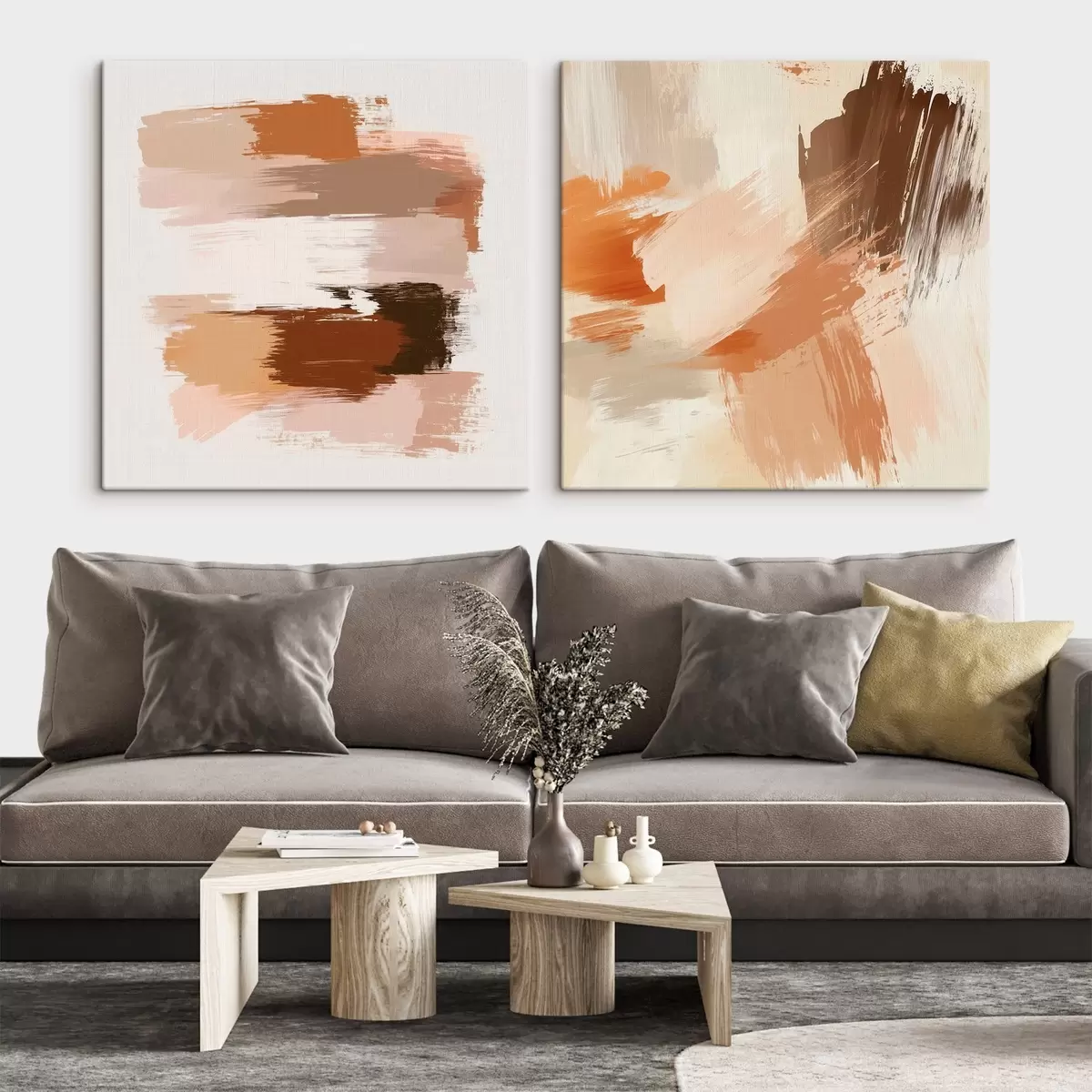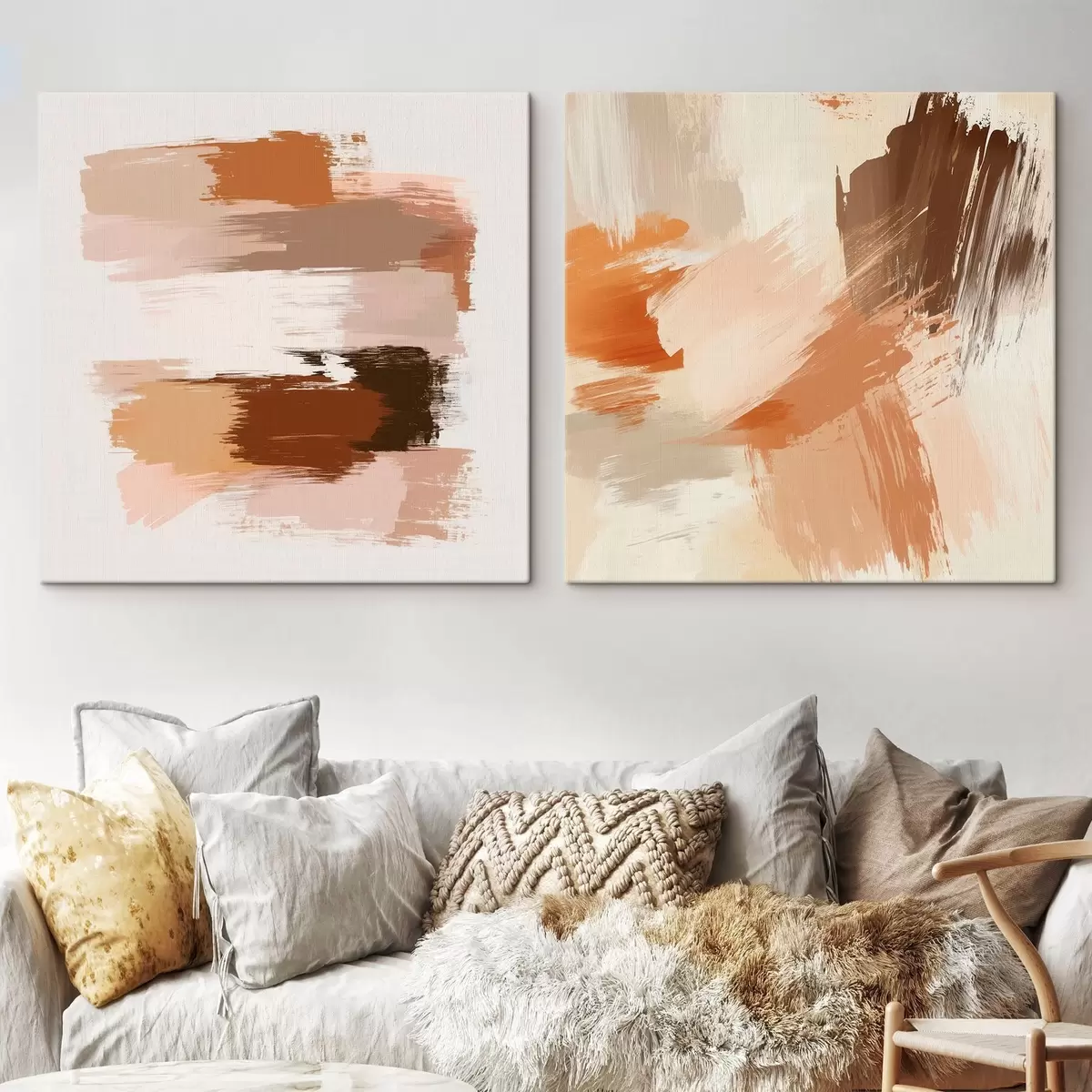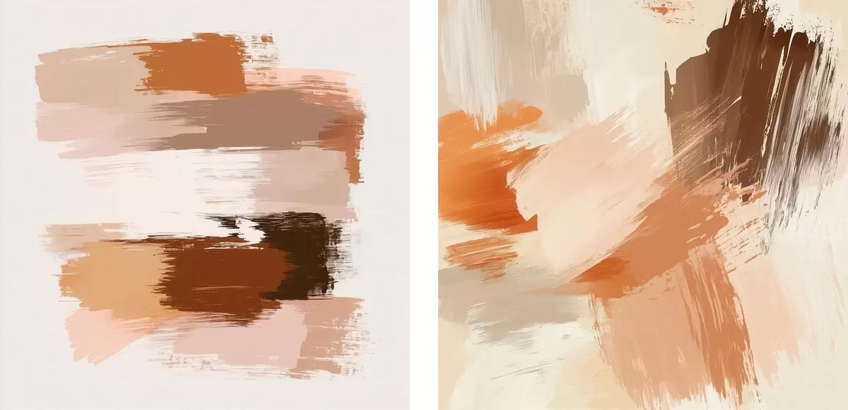 murales Arte decorativo en cálidos tonos marrón-beige con un efecto de pinceladas pictóricas m30355