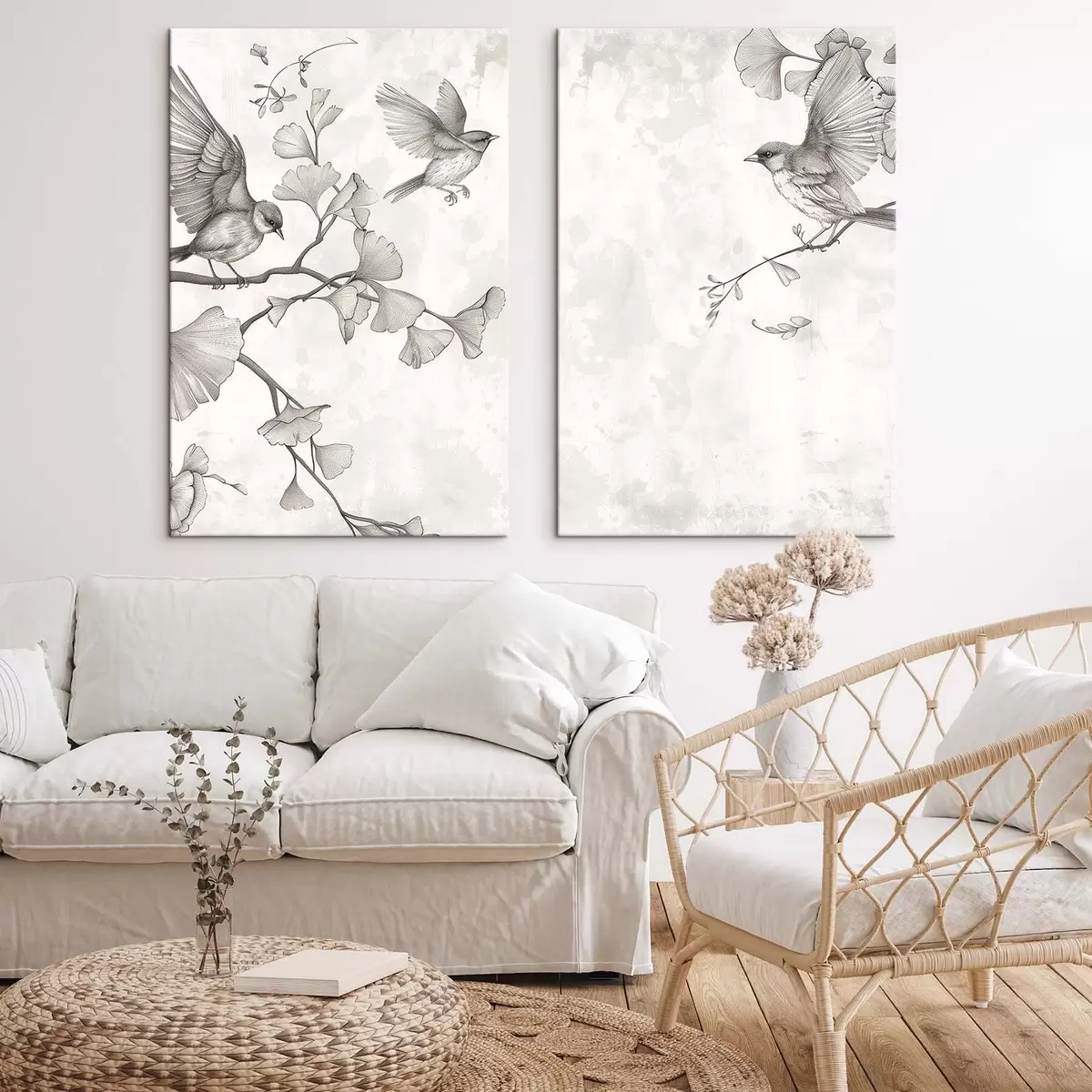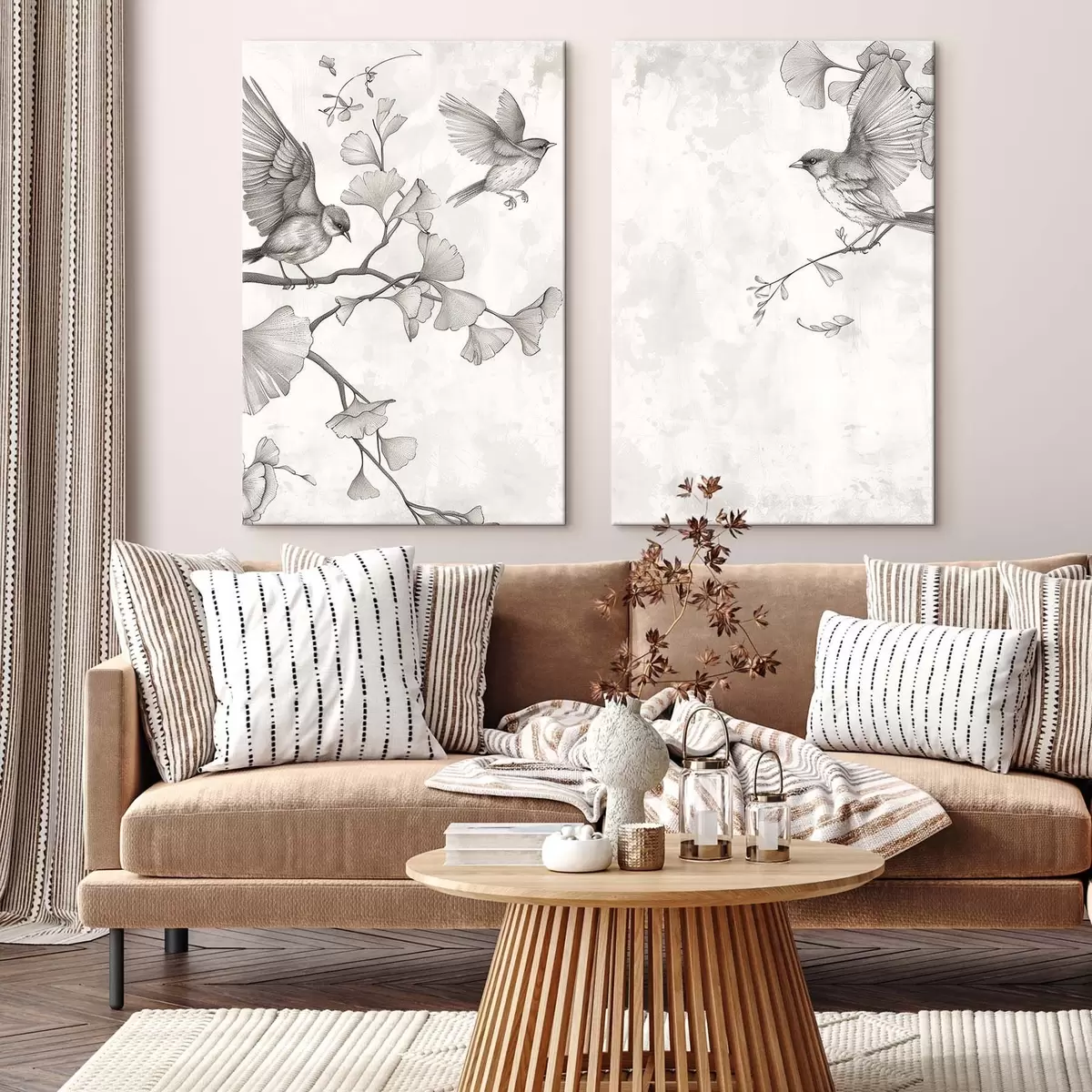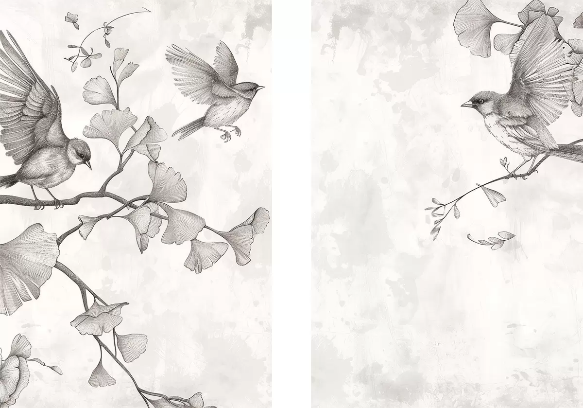 murales Pájaros en las ramas de un ginkgo m30380