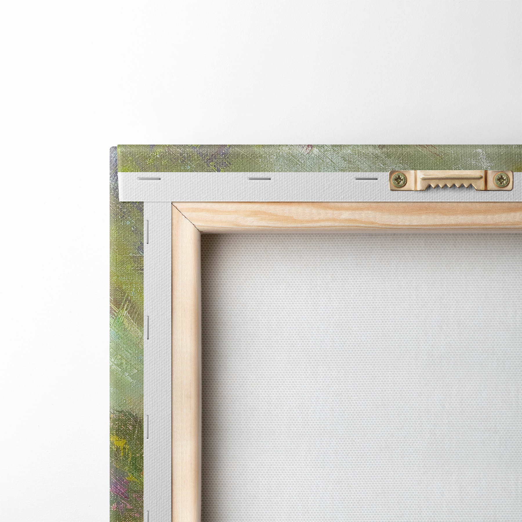 Vendemos cuadros en bastidor: se trata de un marco de madera sobre el que se extiende el lienzo. Este cuadro no necesita marco; puedes colgarlo directamente en la pared.