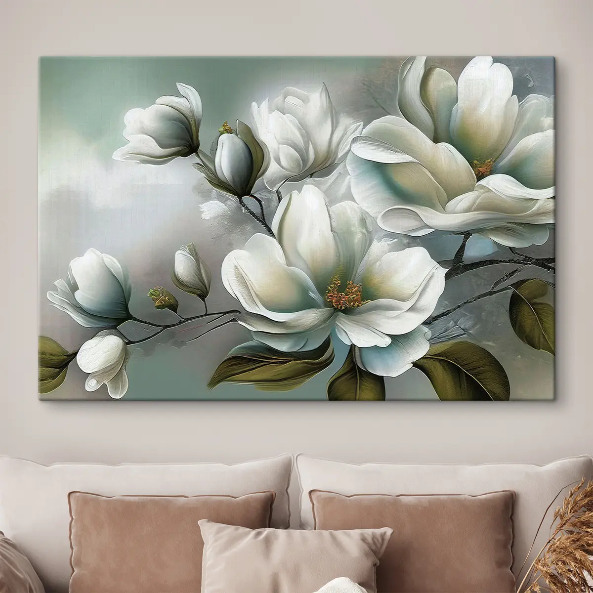 Hay tres tipos de material disponibles para pedidos: Lienzo Económico - material denso y duradero para impresión digital, idéntico al lienzo de pintor, superficie impermeable, reproducción realista de los detalles, material de grano medio. Lienzo Premium - la textura se asemeja a la de un lienzo de pintor (pequeños hilos entrelazados). Reproducción suave y detallada de la imagen sobre una superficie mate. Eco-Premium - tejido 100% algodón de alta calidad. Gracias a las fibras naturales de algodón, el material es duradero y resistente al desgaste. Excelente reproducción del color y el detalle.