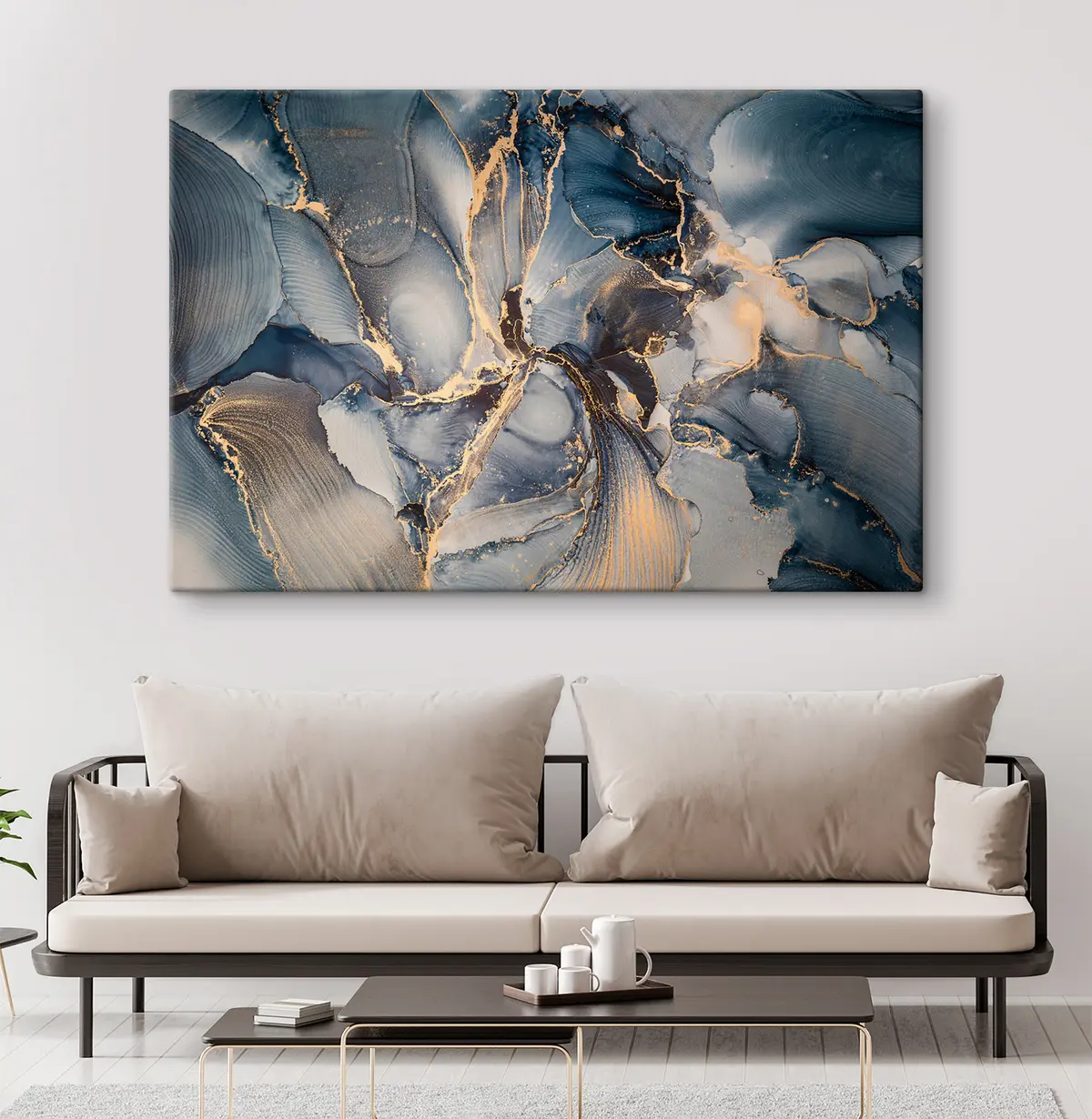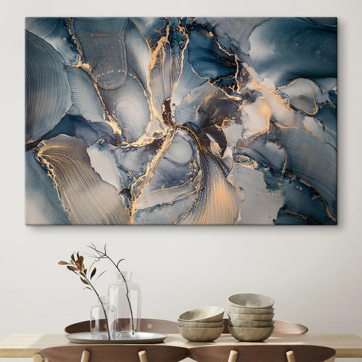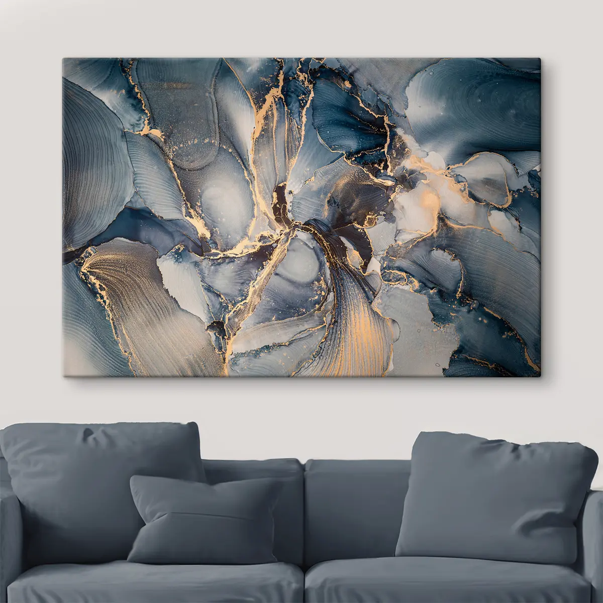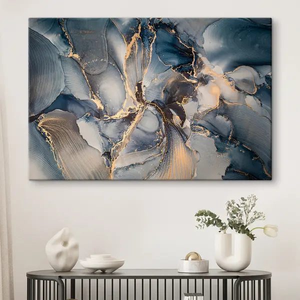 murales Patrones abstractos en azul fluido y dorado s36042