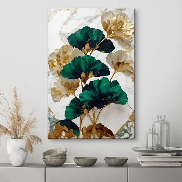 murales Elegantes hojas sobre fondo de mármol s36646