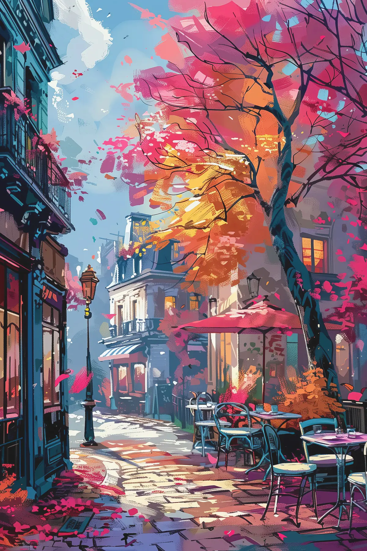 murales Encantadora escena otoñal en la ciudad s37459