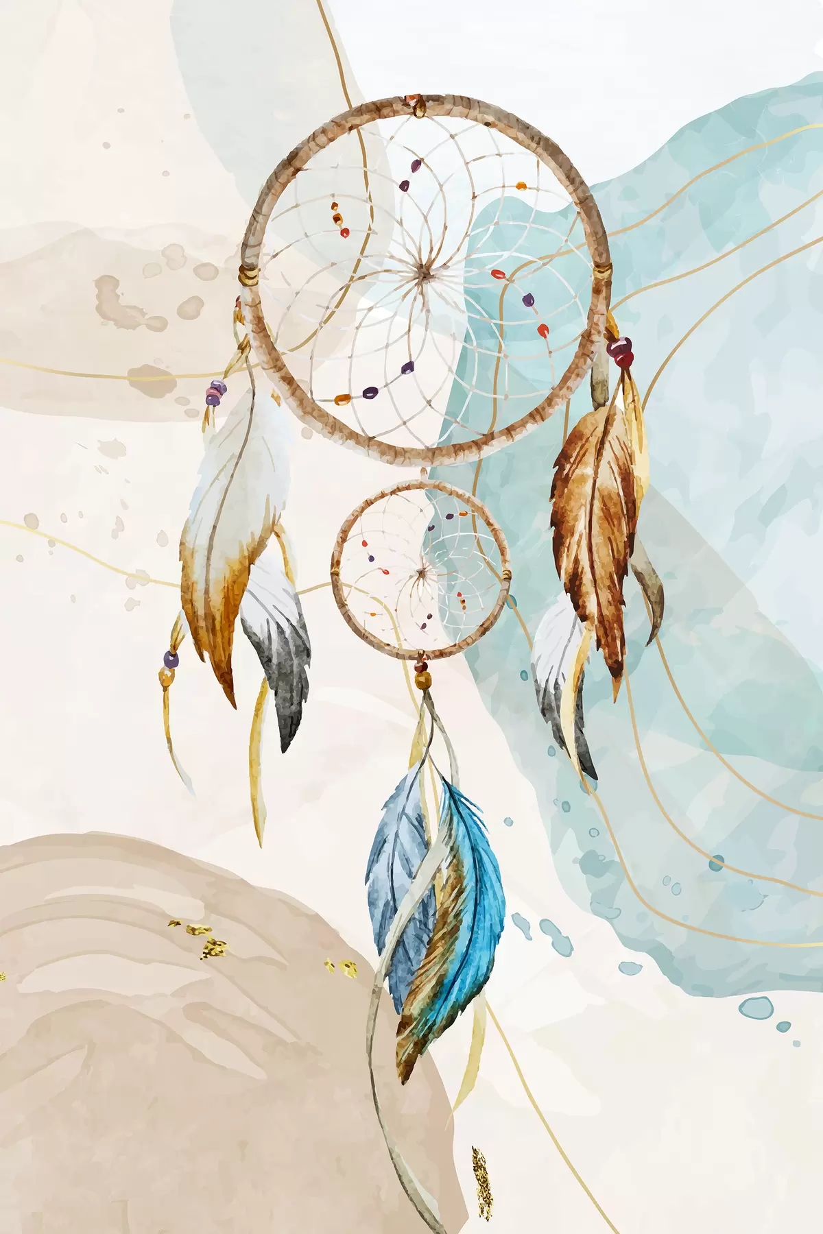 murales acuarela, atrapasueños, plumas, pasteles s38330