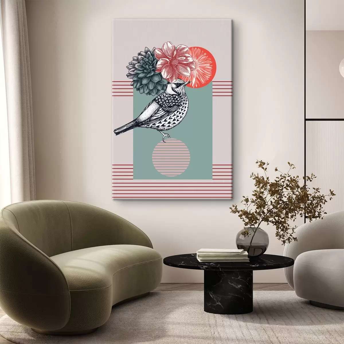 murales Un pájaro con flores en la cabeza s38442