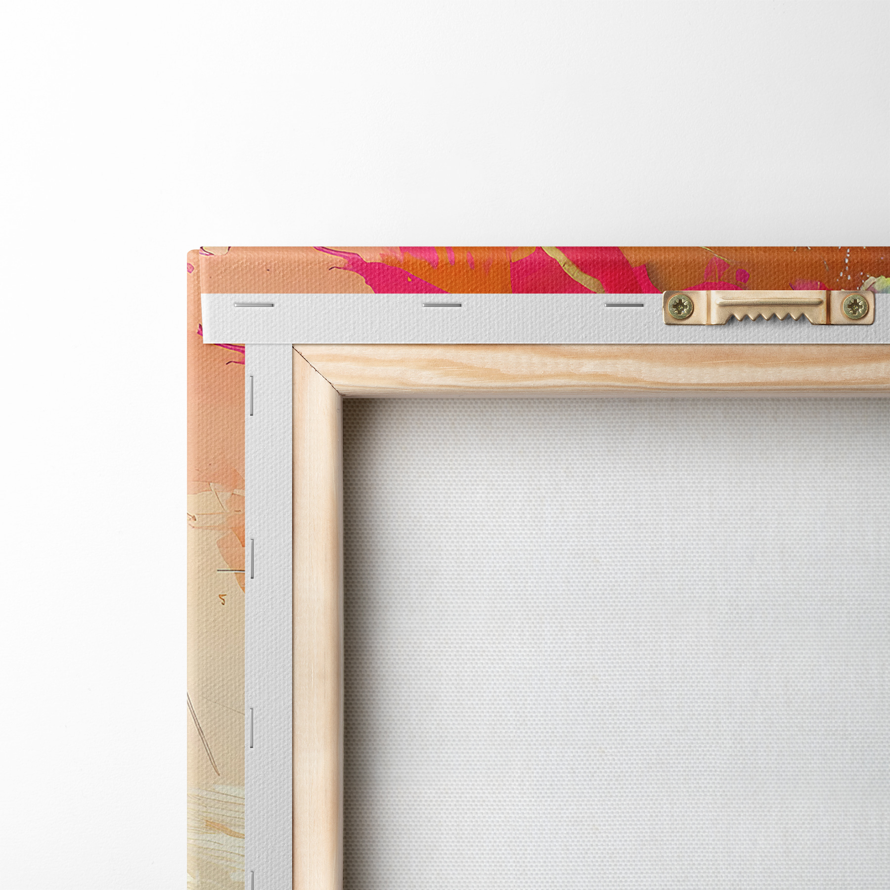 Vendemos cuadros en bastidor: se trata de un marco de madera sobre el que se extiende el lienzo. Este cuadro no necesita marco; puedes colgarlo directamente en la pared.