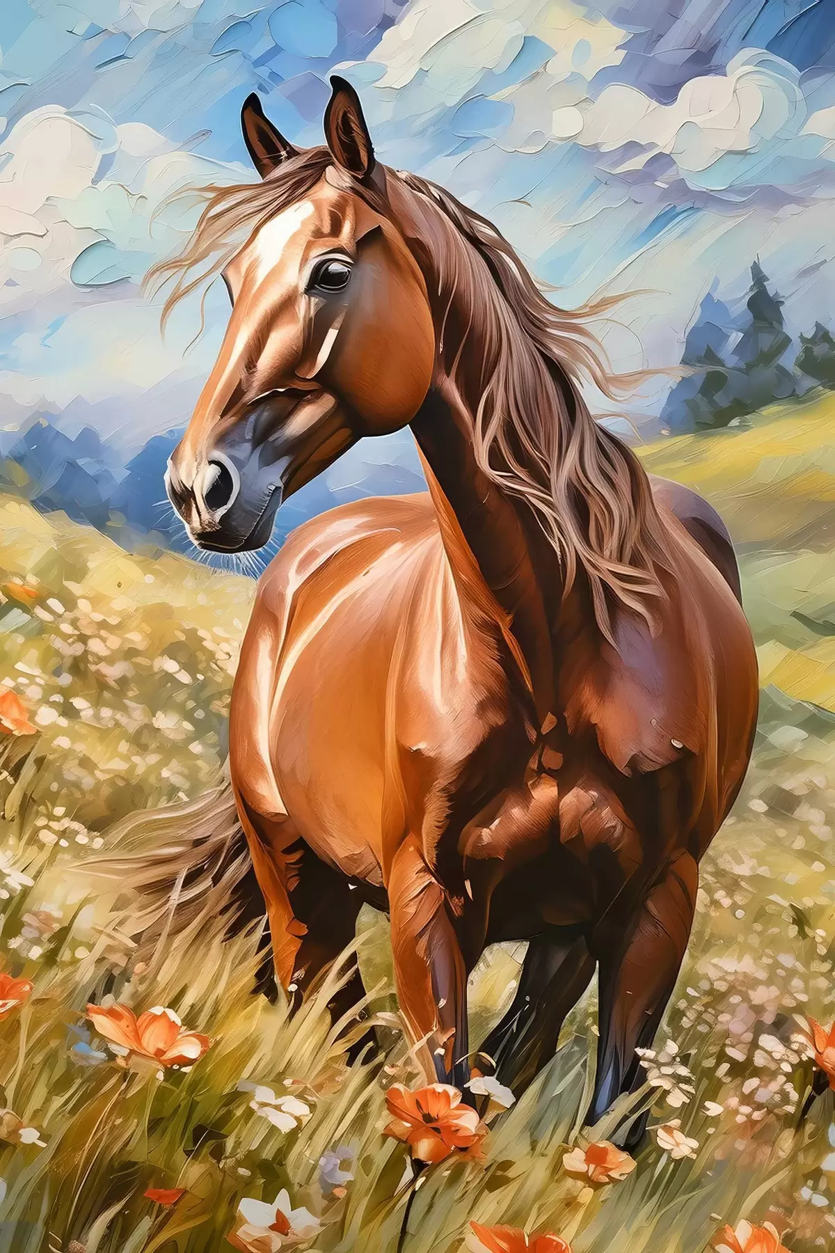 murales Un caballo en un campo de flores s38728