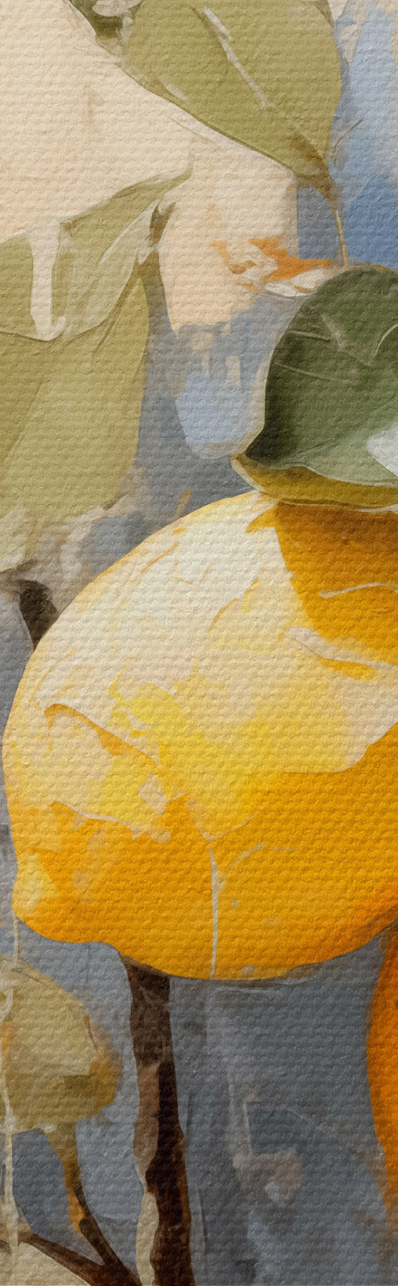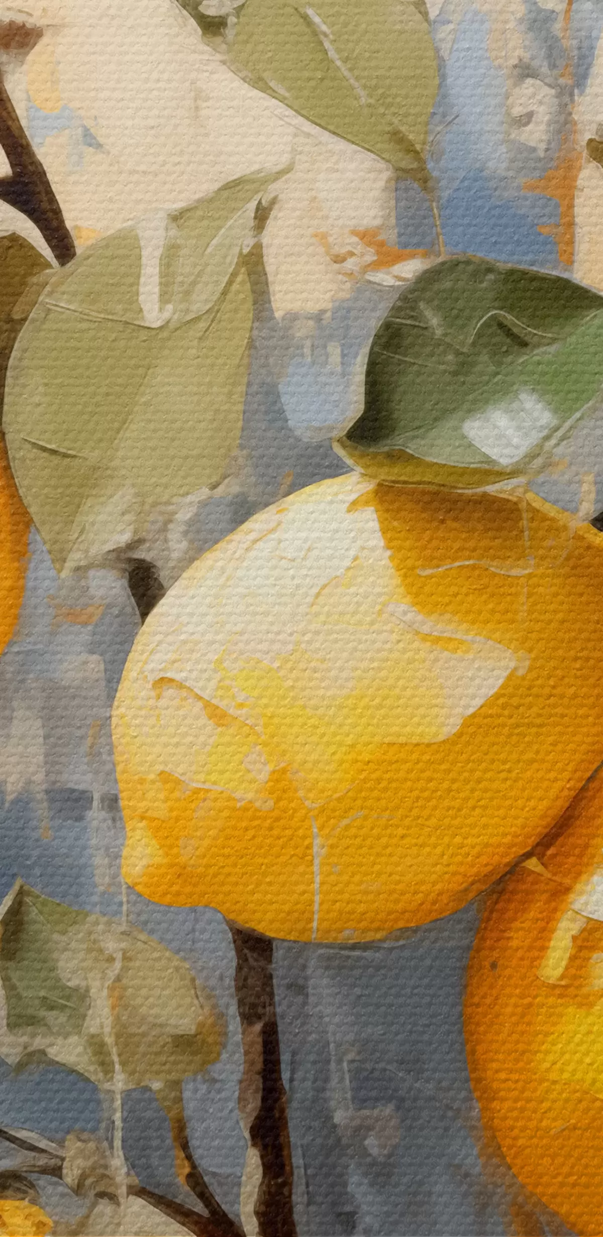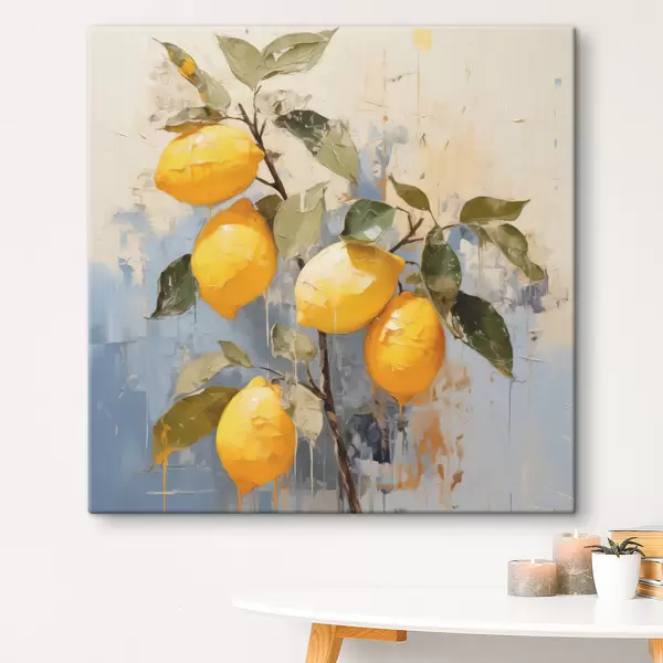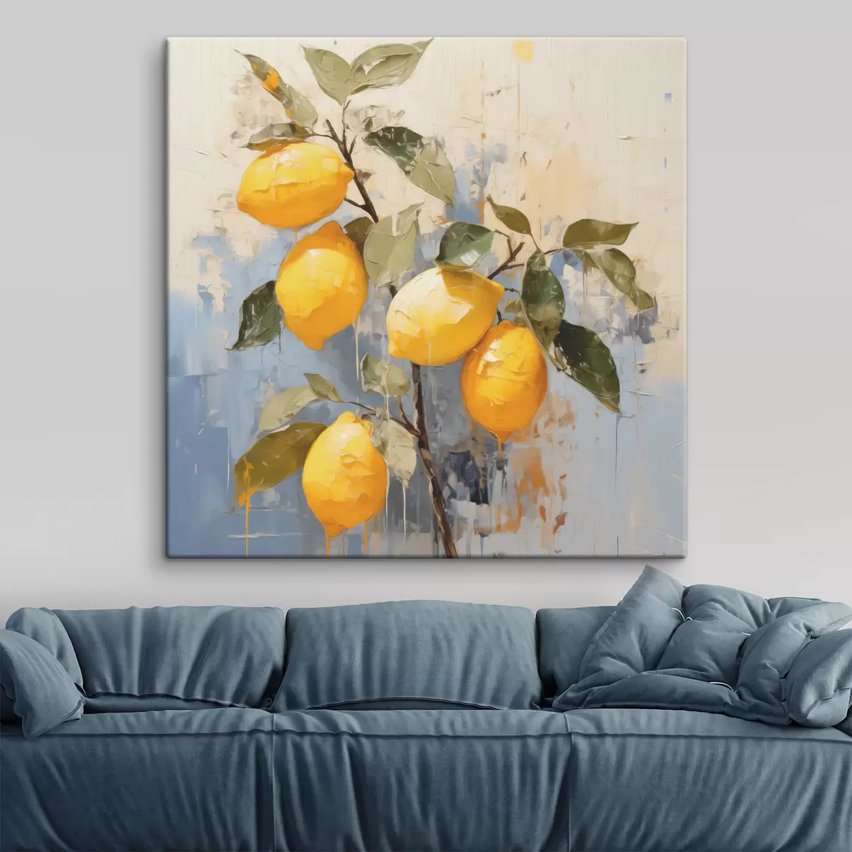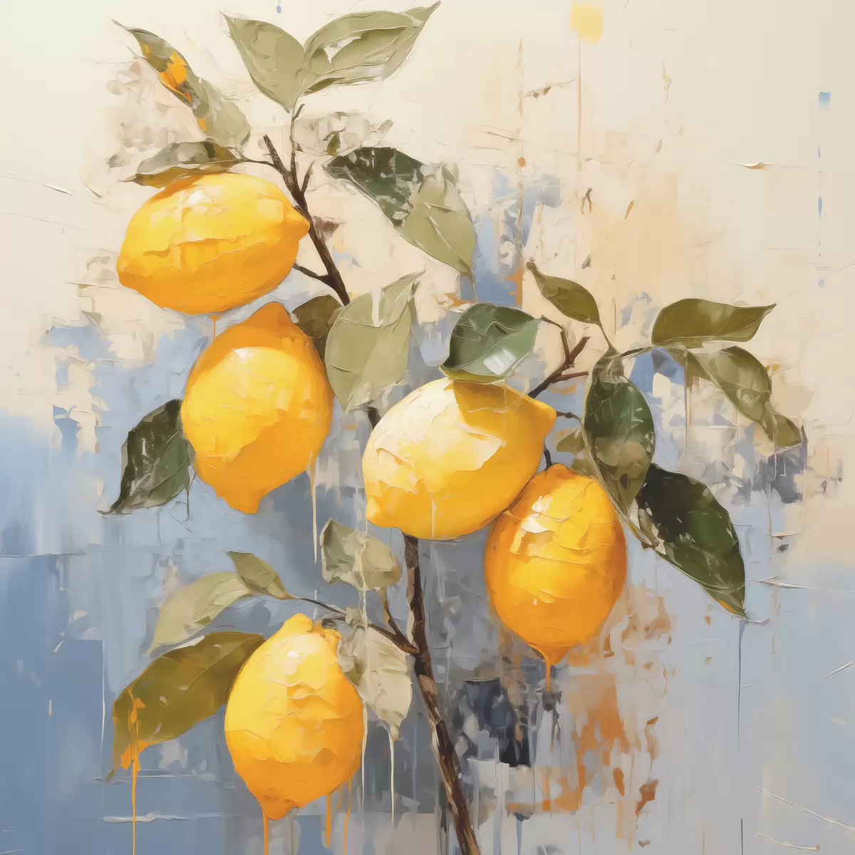 murales Rama con limones maduros pintura al óleo arte abstracto, color amarillo, azul y verde s39186