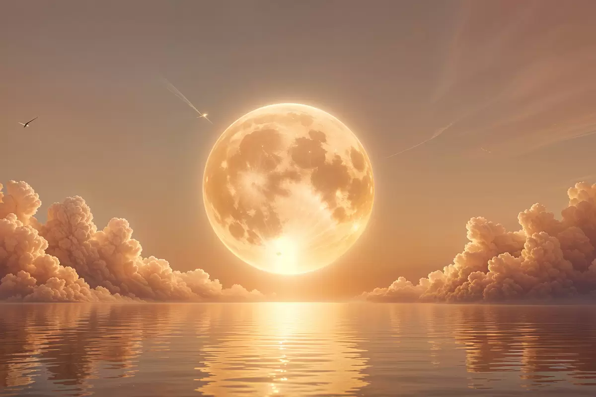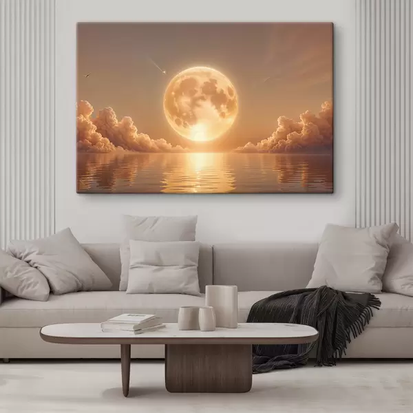 murales Una luna llena grande y brillante que se eleva sobre un océano tranquilo y reflectante al atardecer s39403