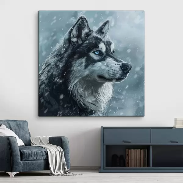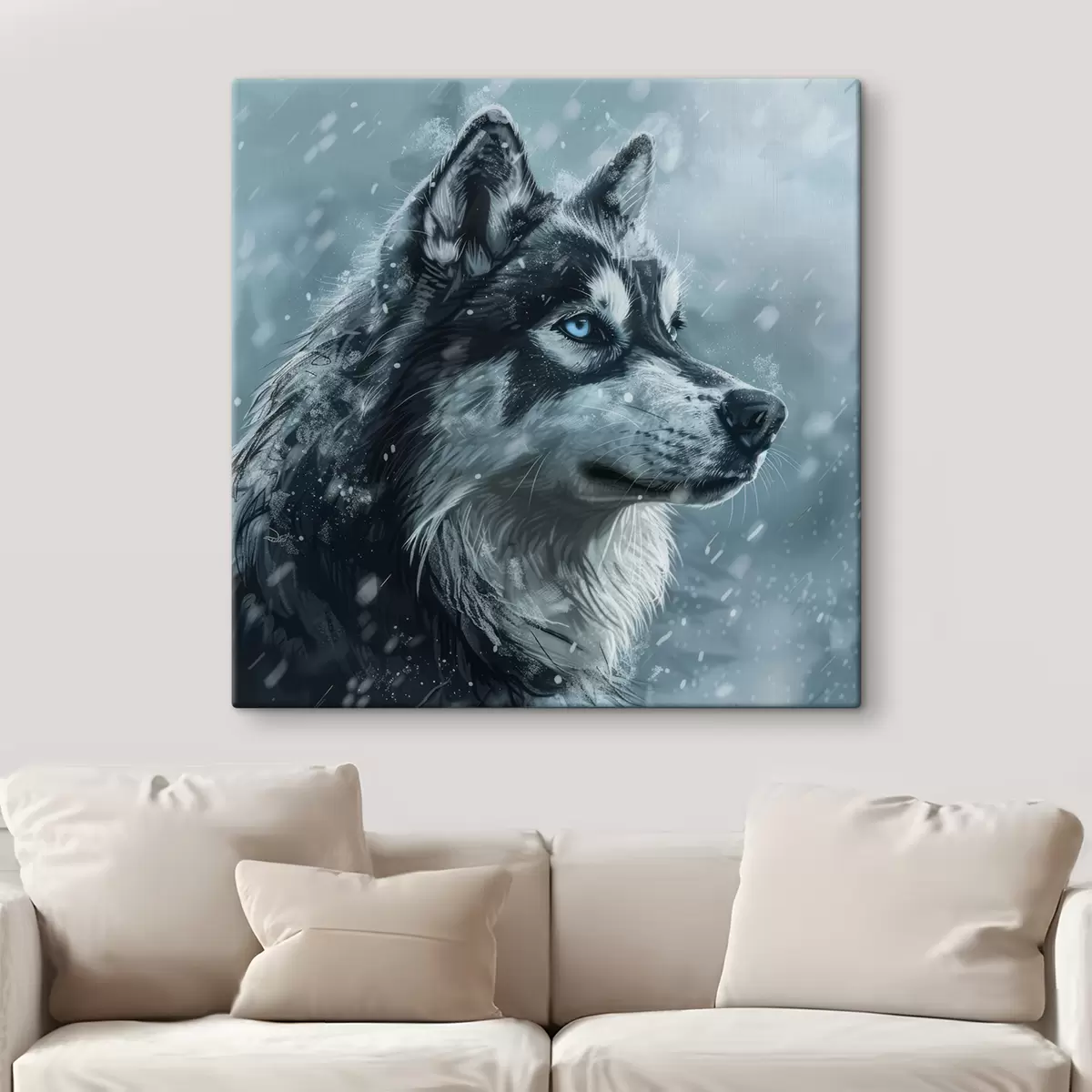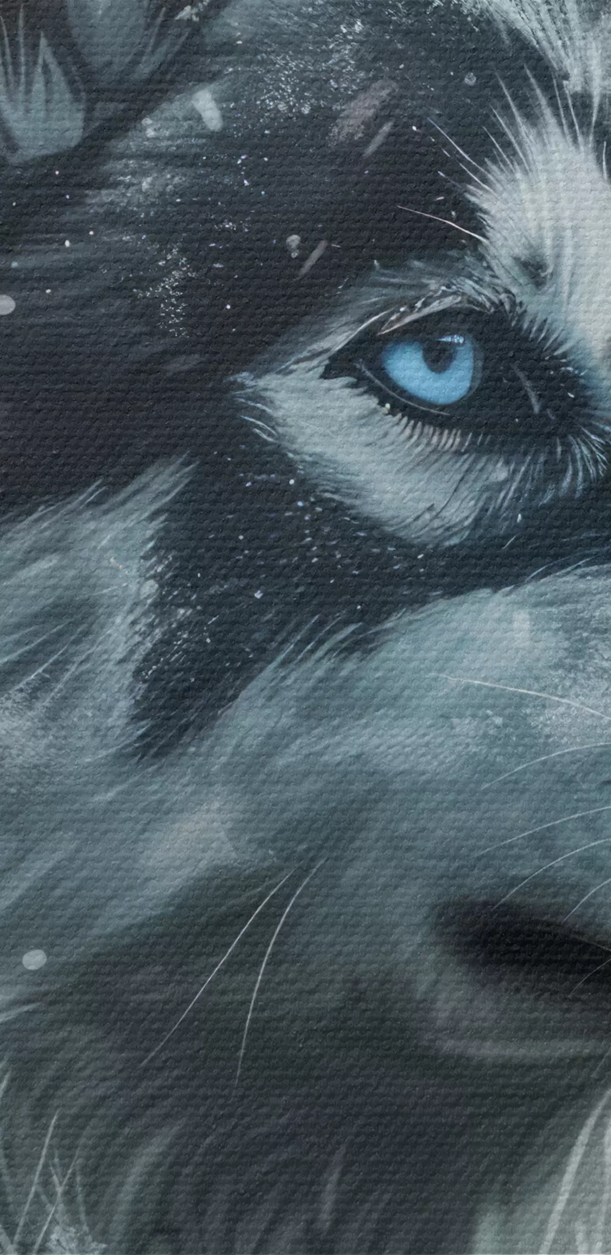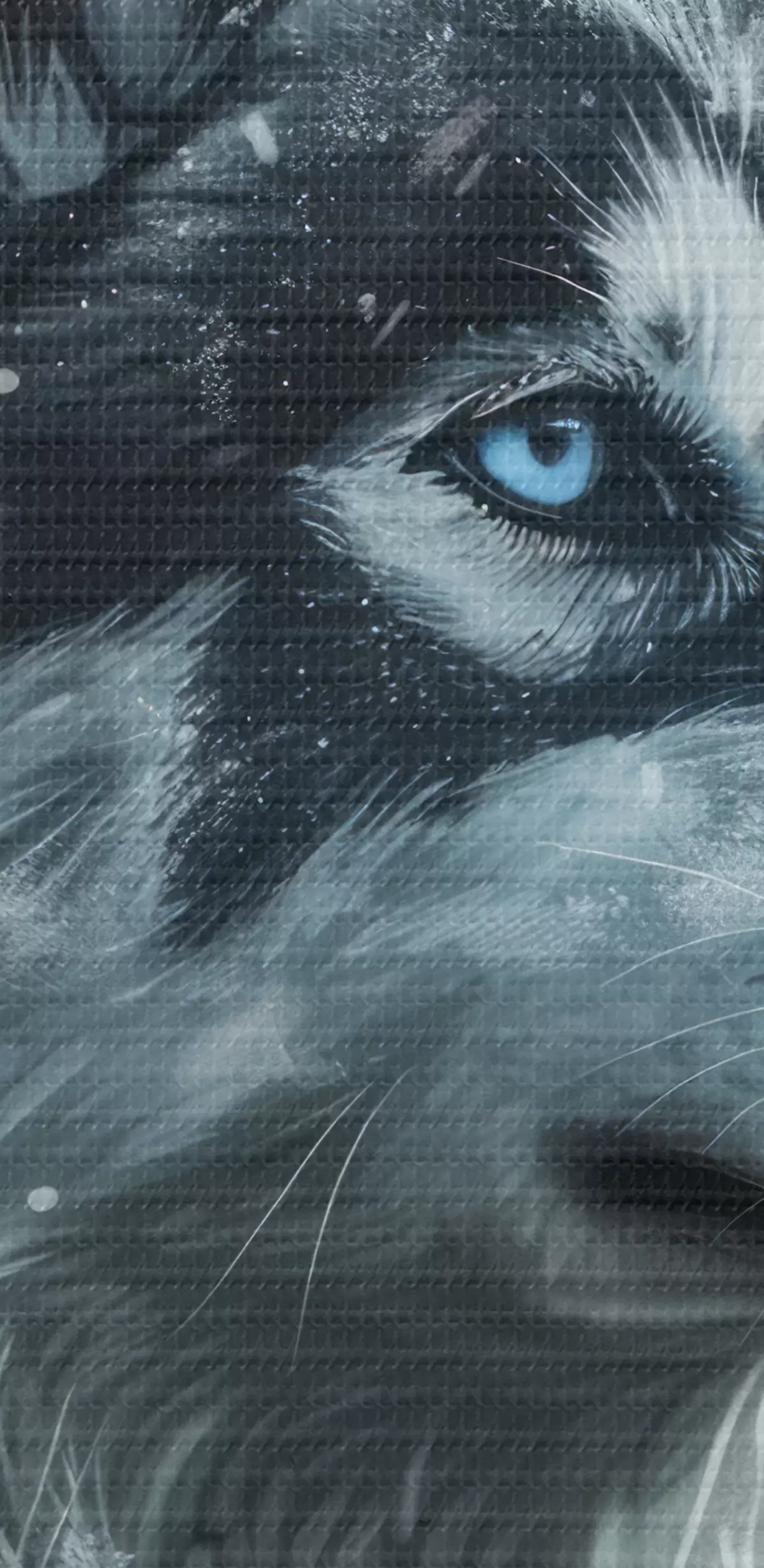 murales Husky con ojos azules sobre fondo azul invernal s39462