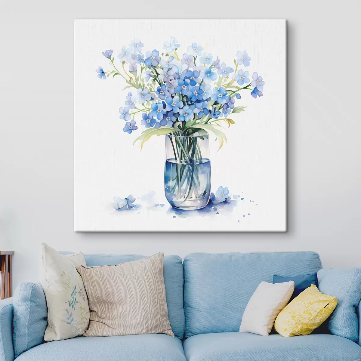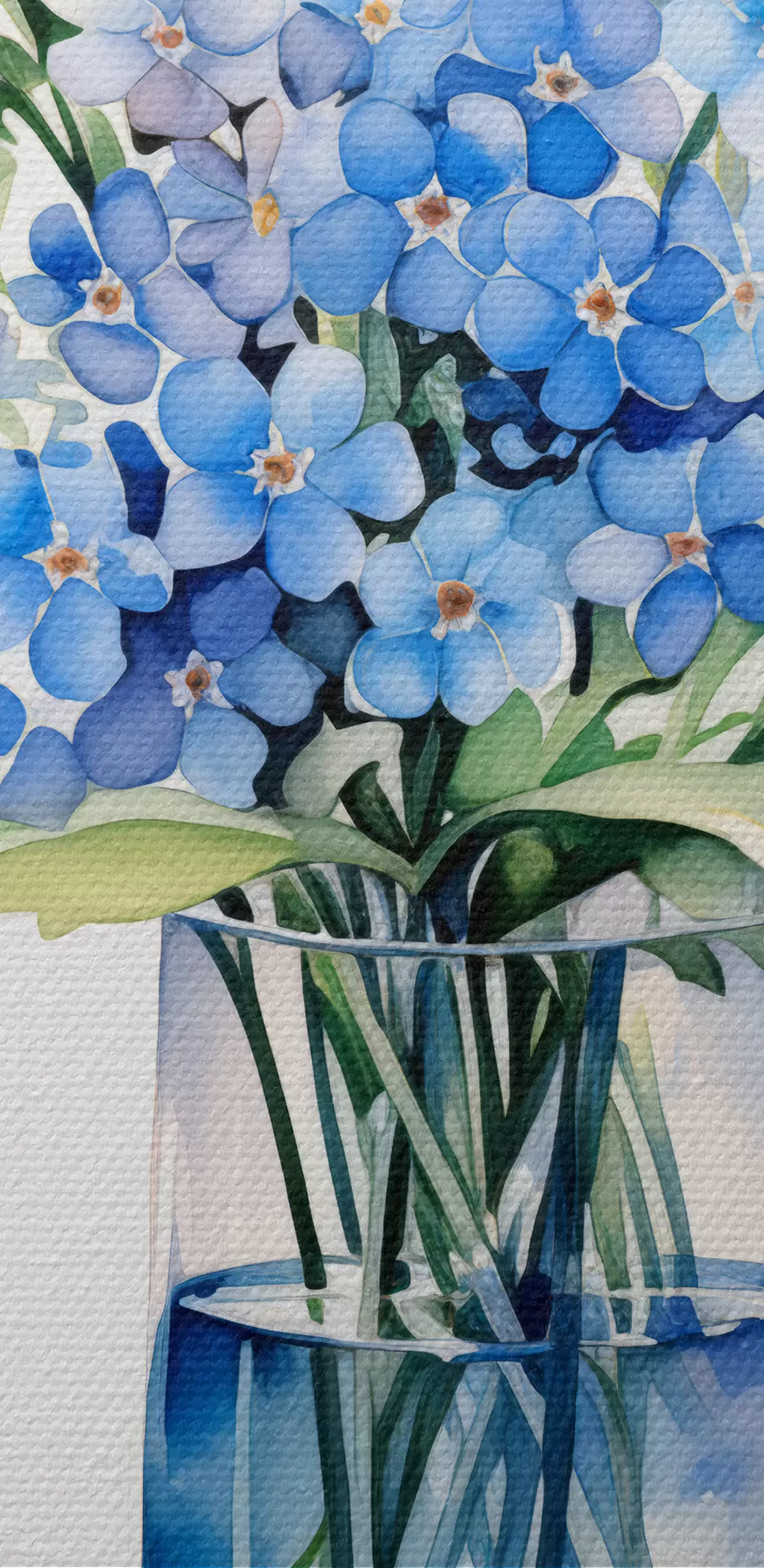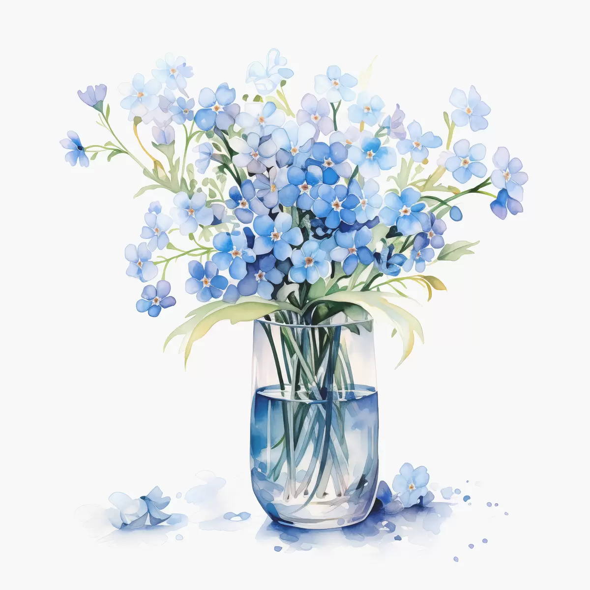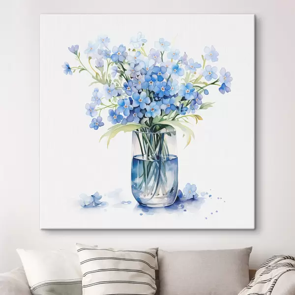 murales Ramo de flores silvestres azules en un jarrón transparente acuarela s39564