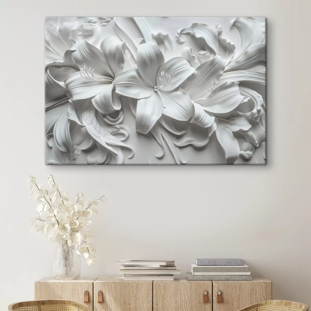 murales Relieve 3d blanco de lirios esculpidos s39654
