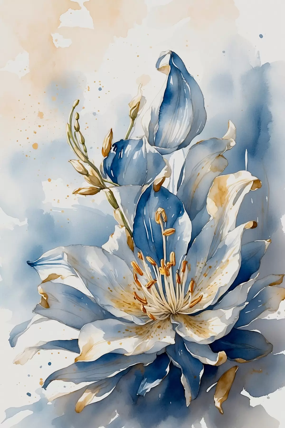 murales Lirio azul con acuarela s39872