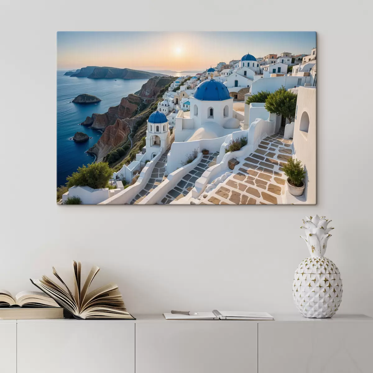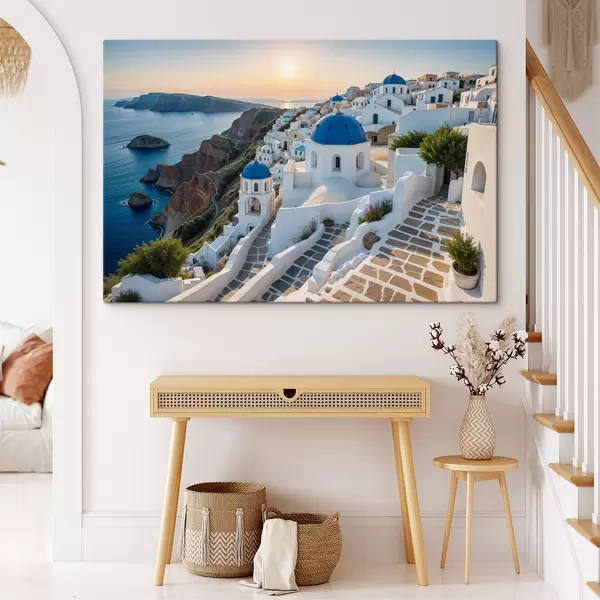 murales La isla de Santorini, Grecia. La ciudad está construida sobre una ladera con vistas al mar Egeo s40160