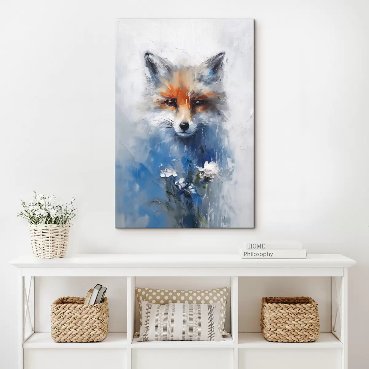 murales Retrato abstracto de un zorro en manchas de pintura azul s40524