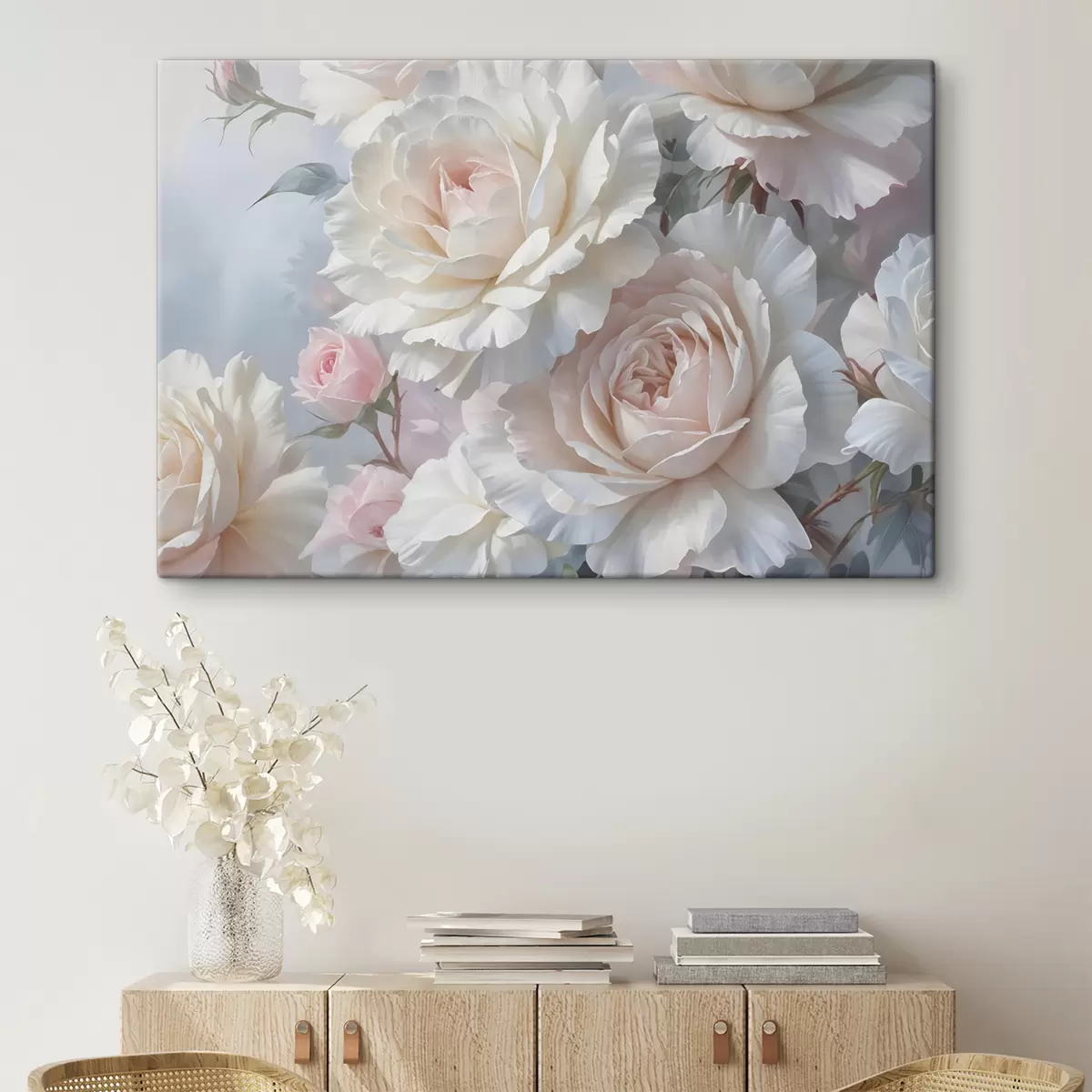 murales Rosas blancas y rosadas suaves y delicadas con fondo borroso s40562