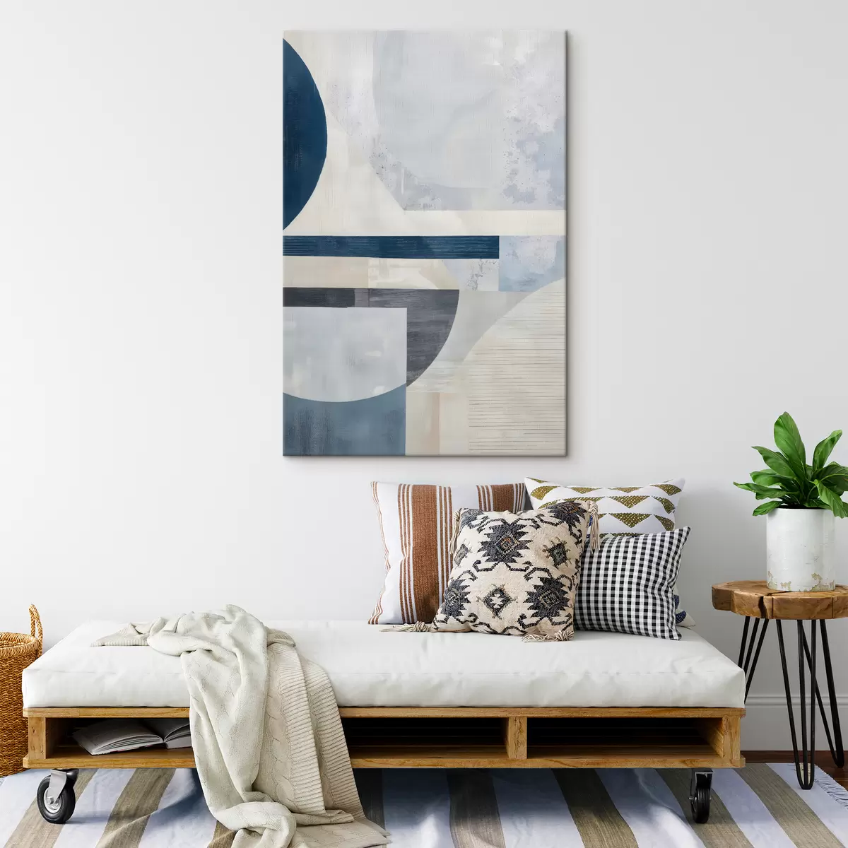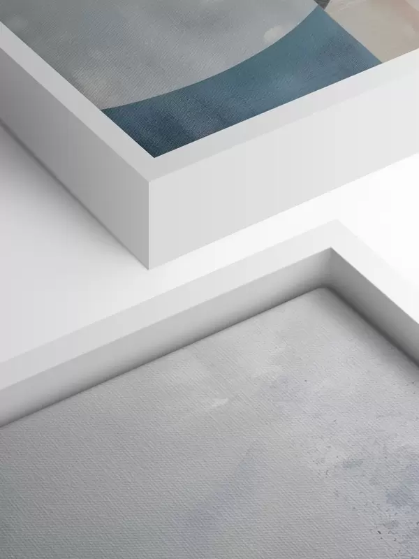 murales Una abstracción minimalista con formas geométricas y texturas en tonos azules, grises y blancos s40596