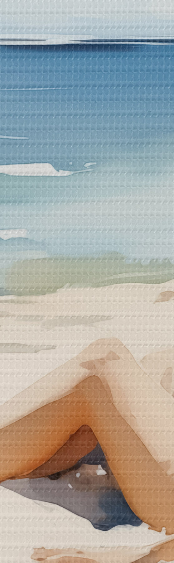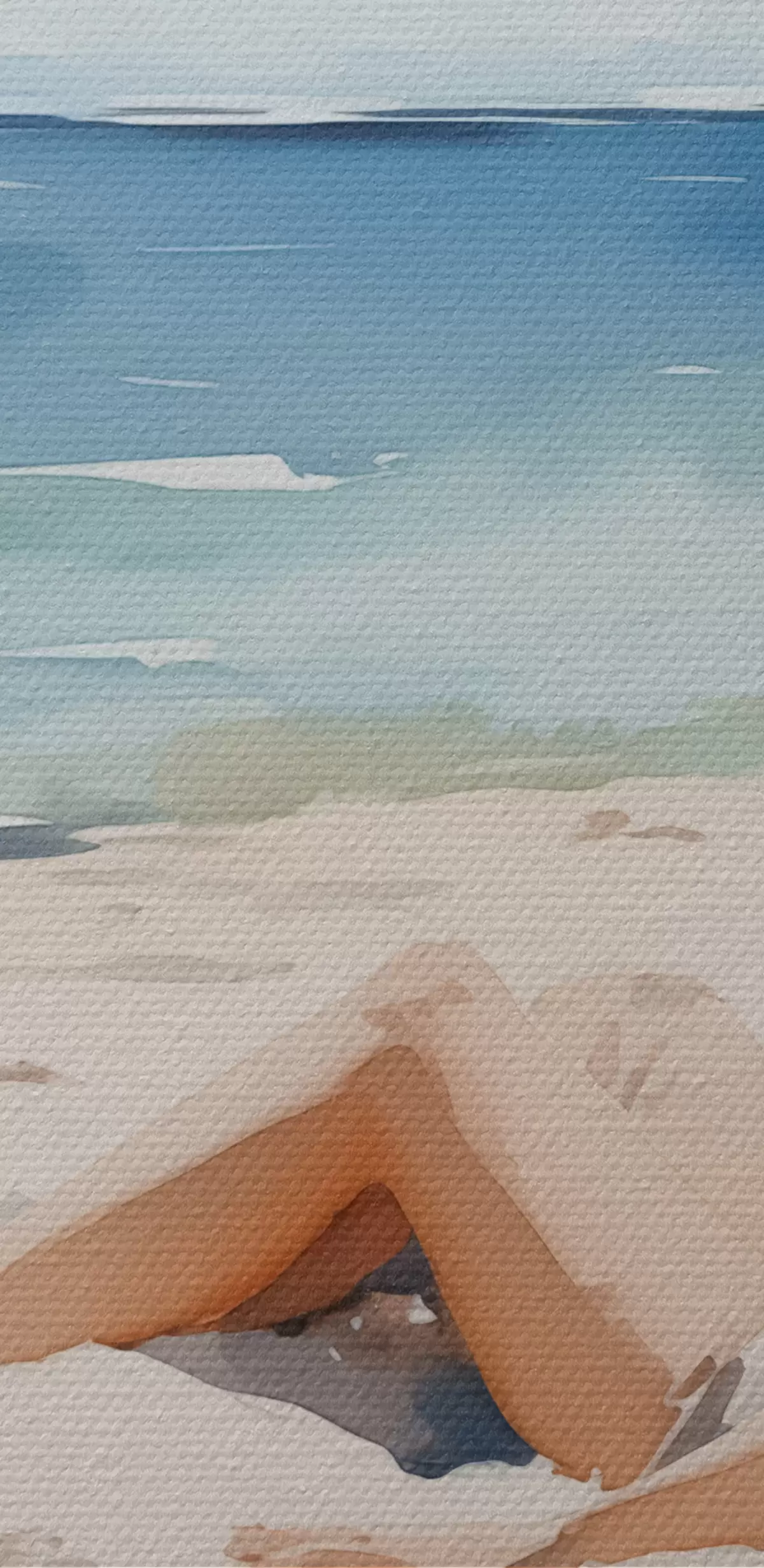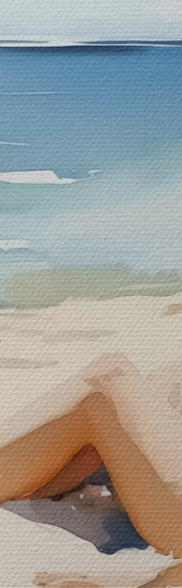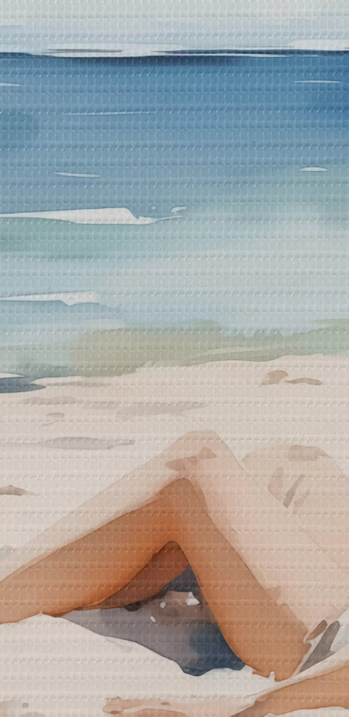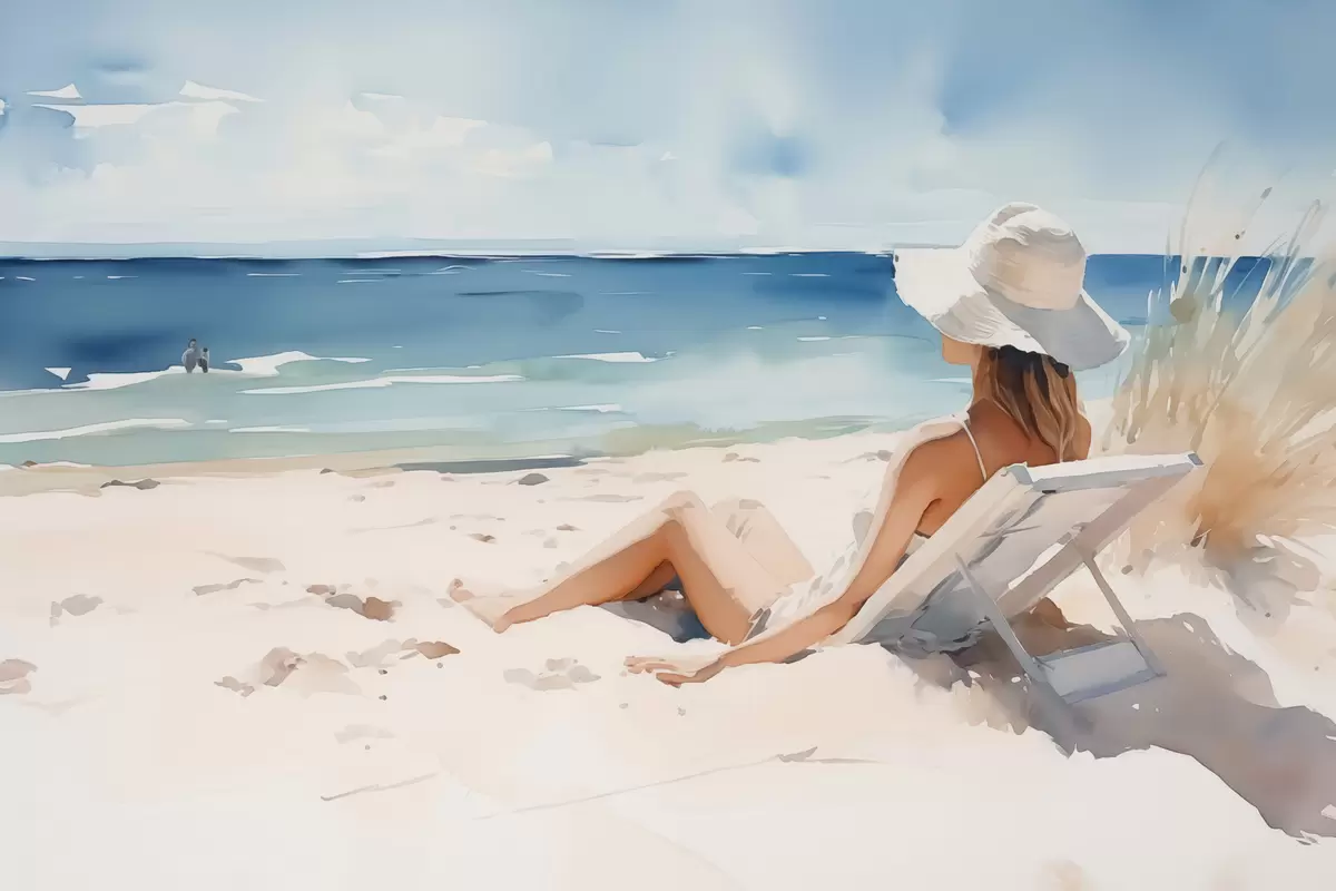 murales Chica relajándose en la playa junto al mar acuarela s40679