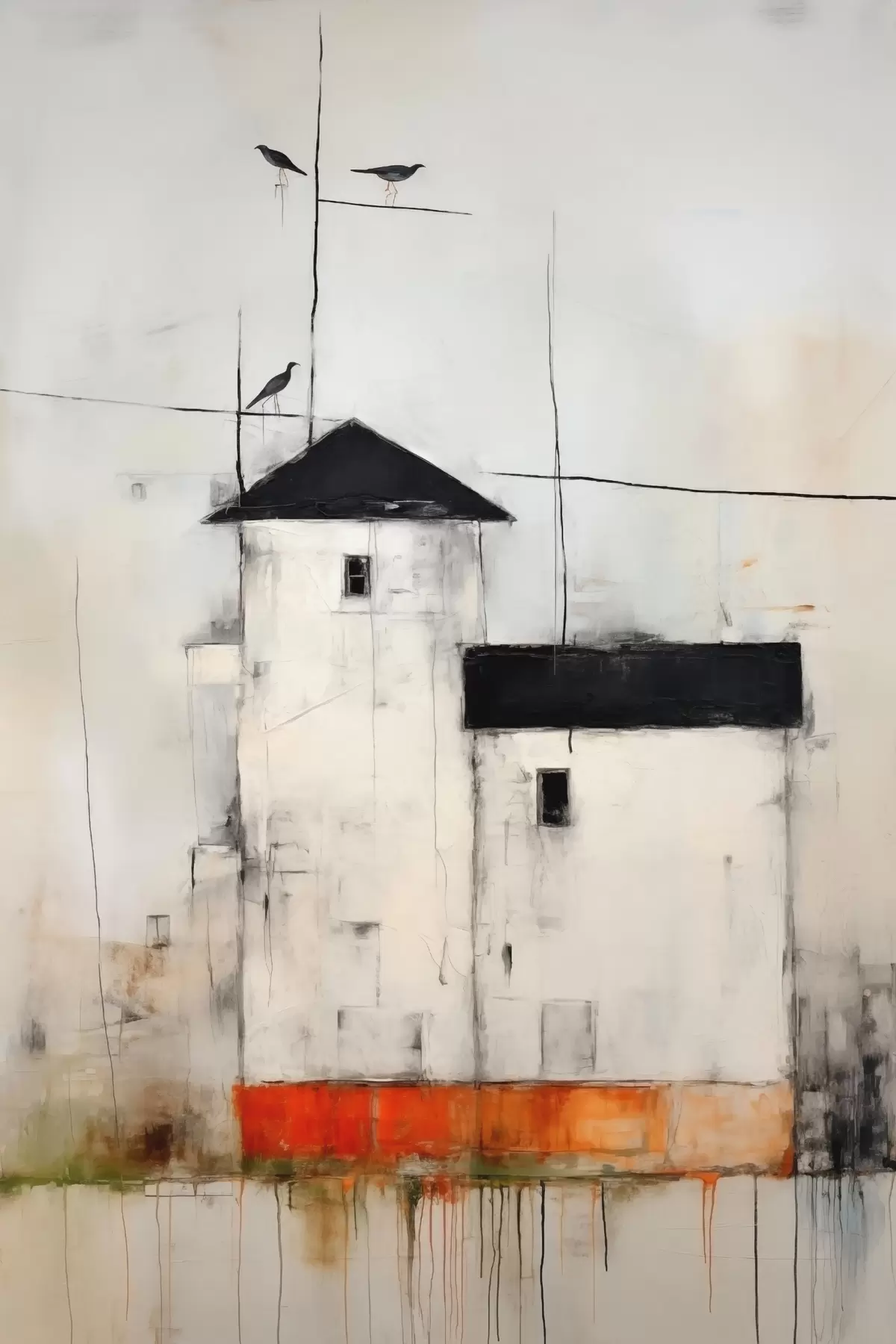 murales Escena abstracta con pájaros y edificio s40685