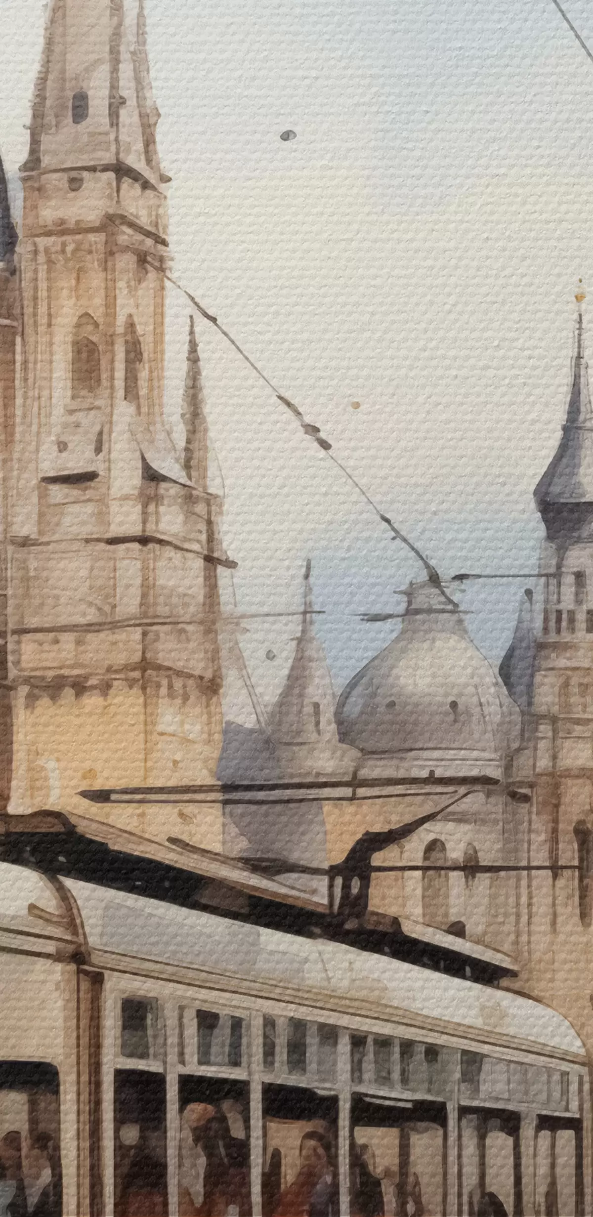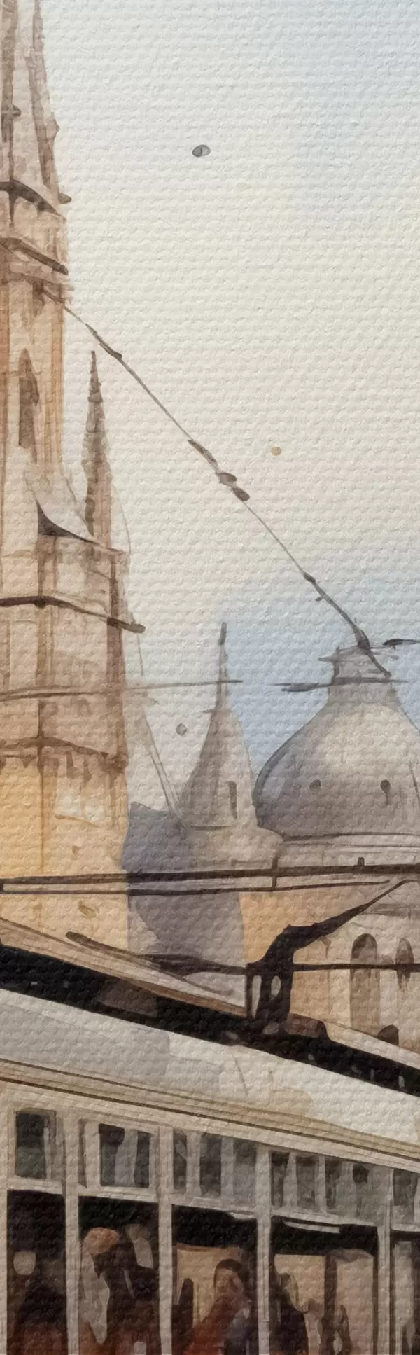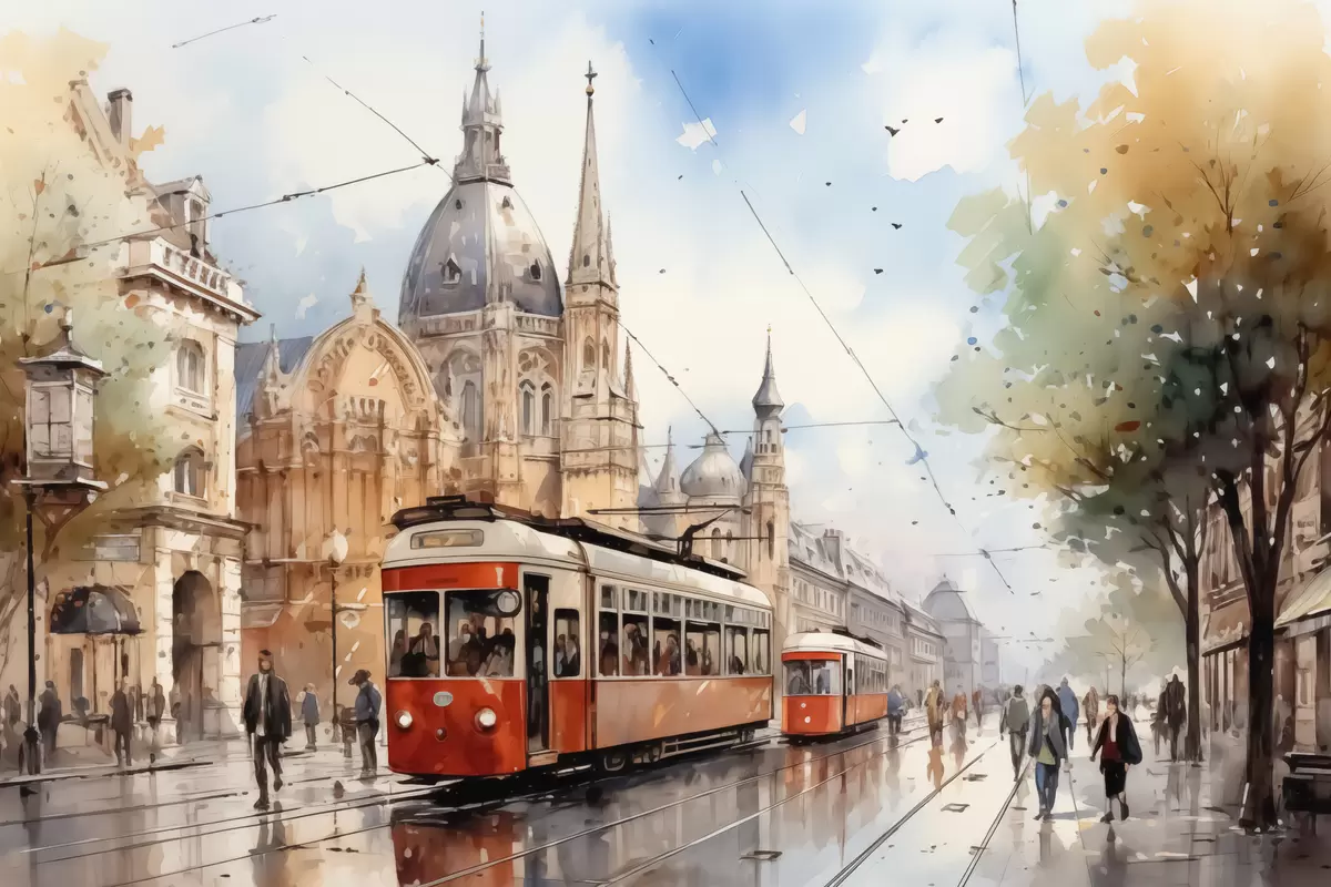 murales Tranvía rojo en la calle de Viena acuarela s40732