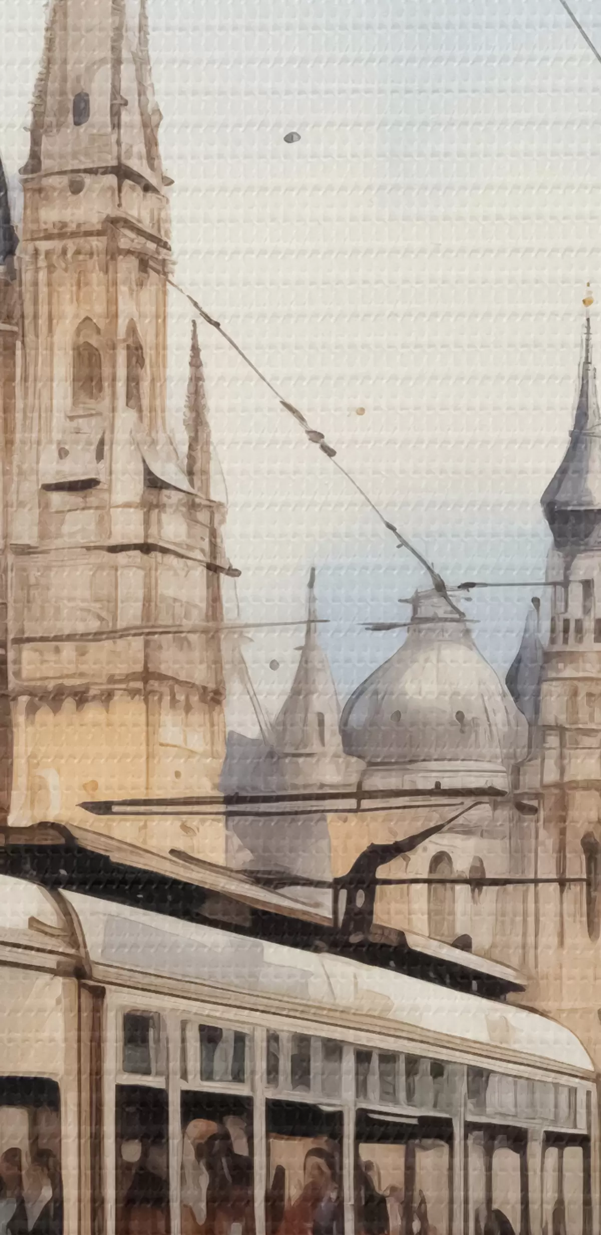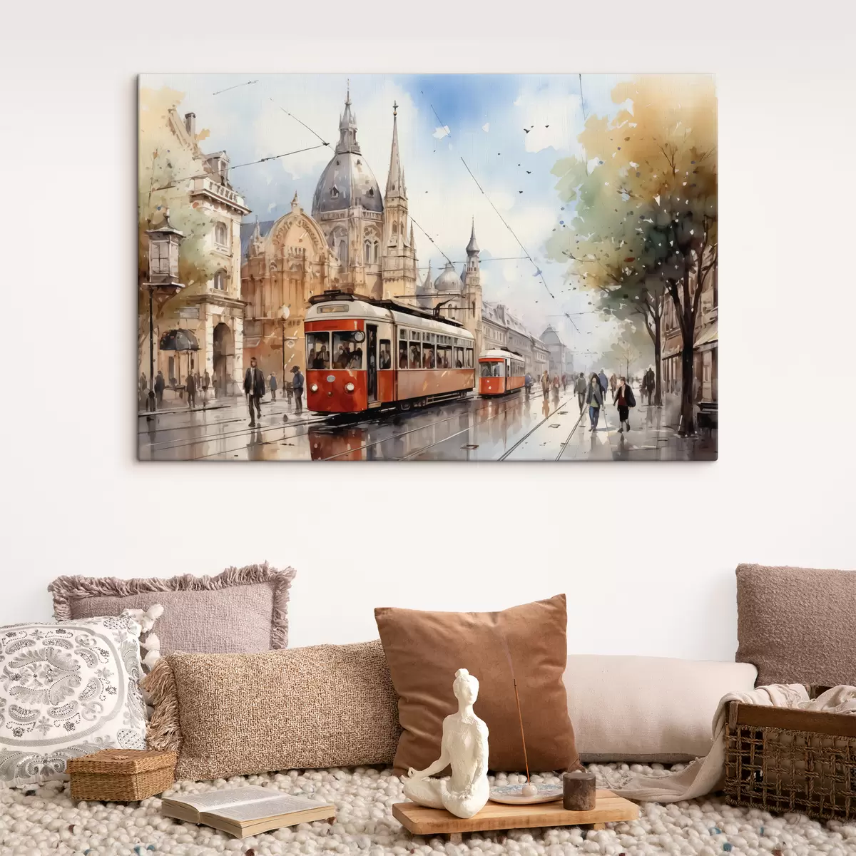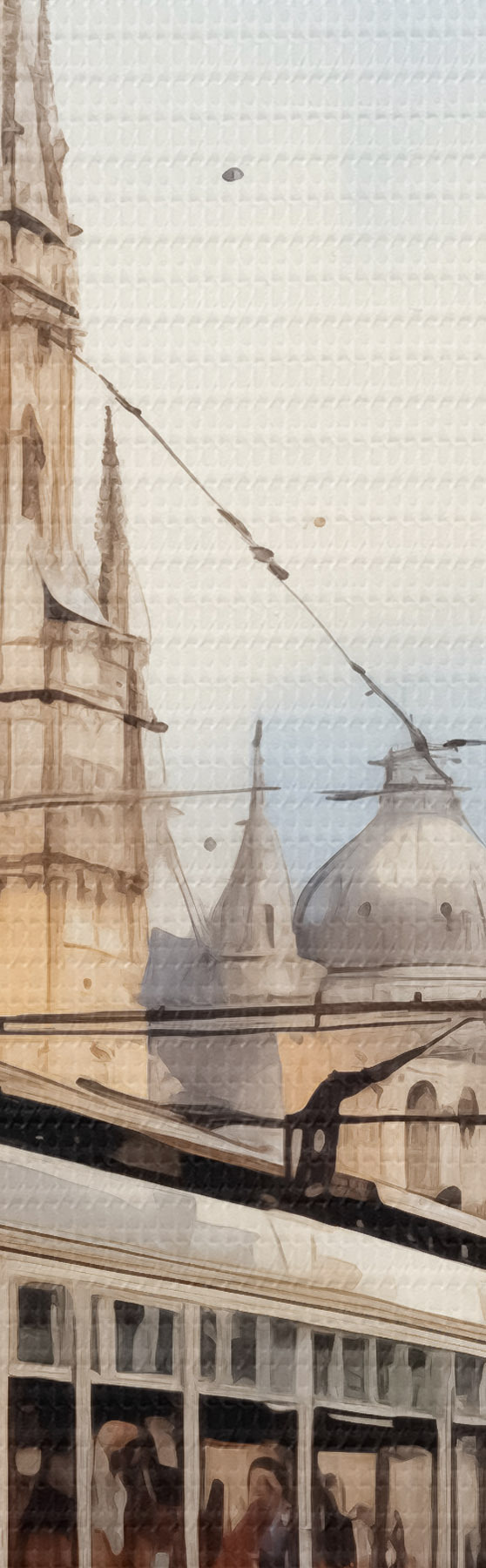 murales Tranvía rojo en la calle de Viena acuarela s40732