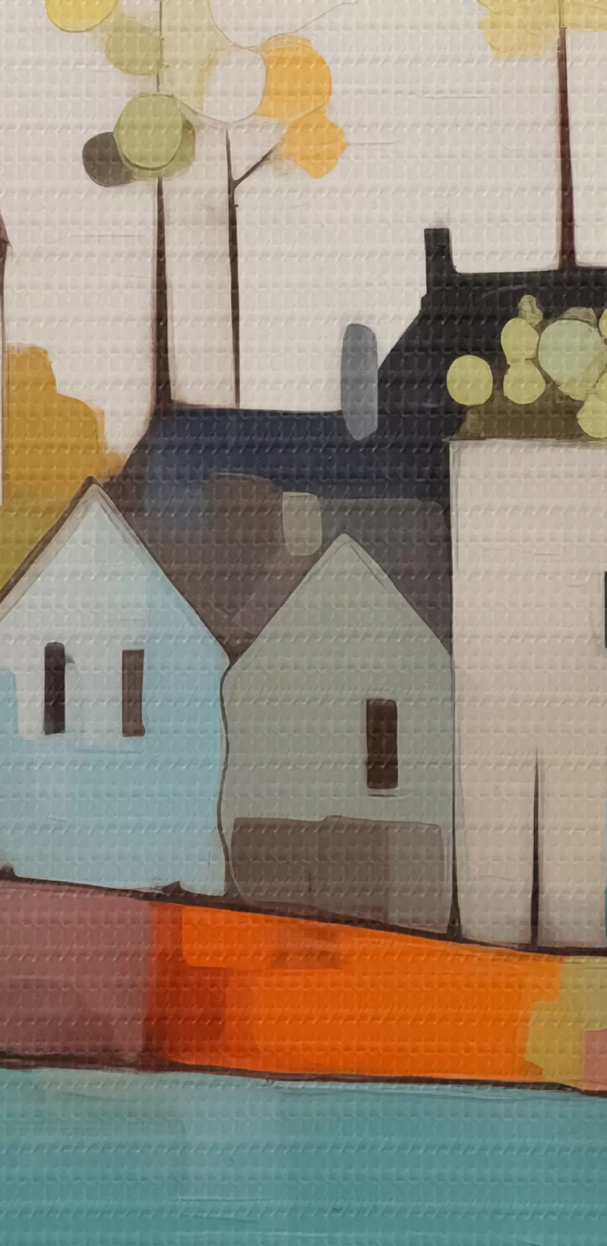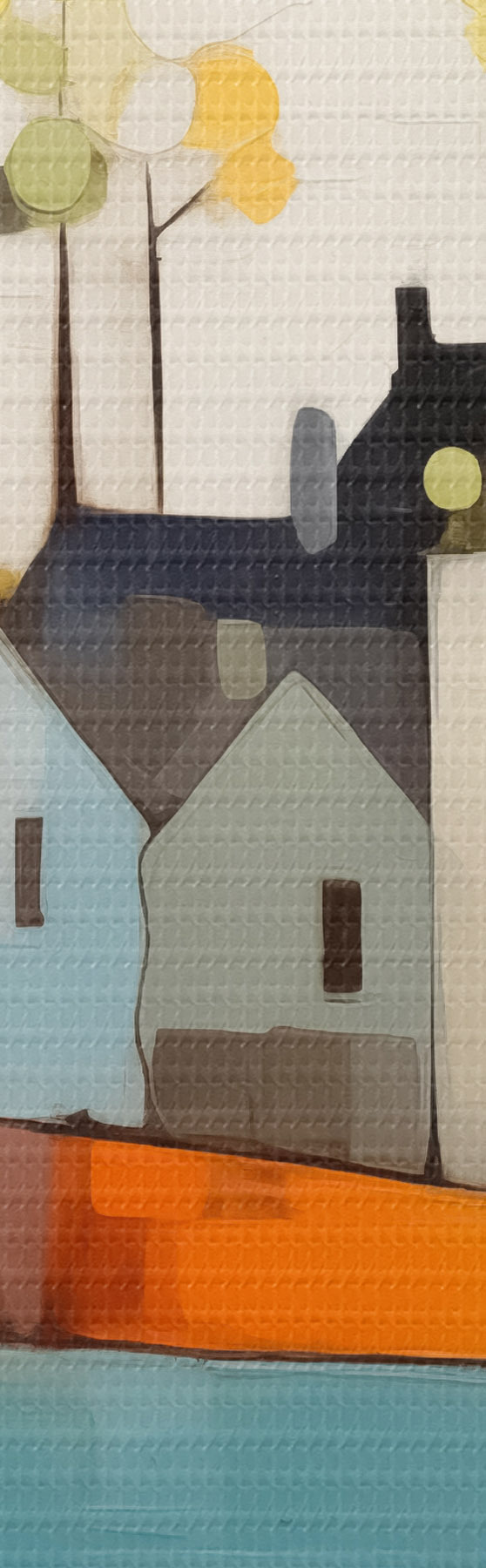 murales Ciudad abstracta y casas, color azul, amarillo, rojo s40751