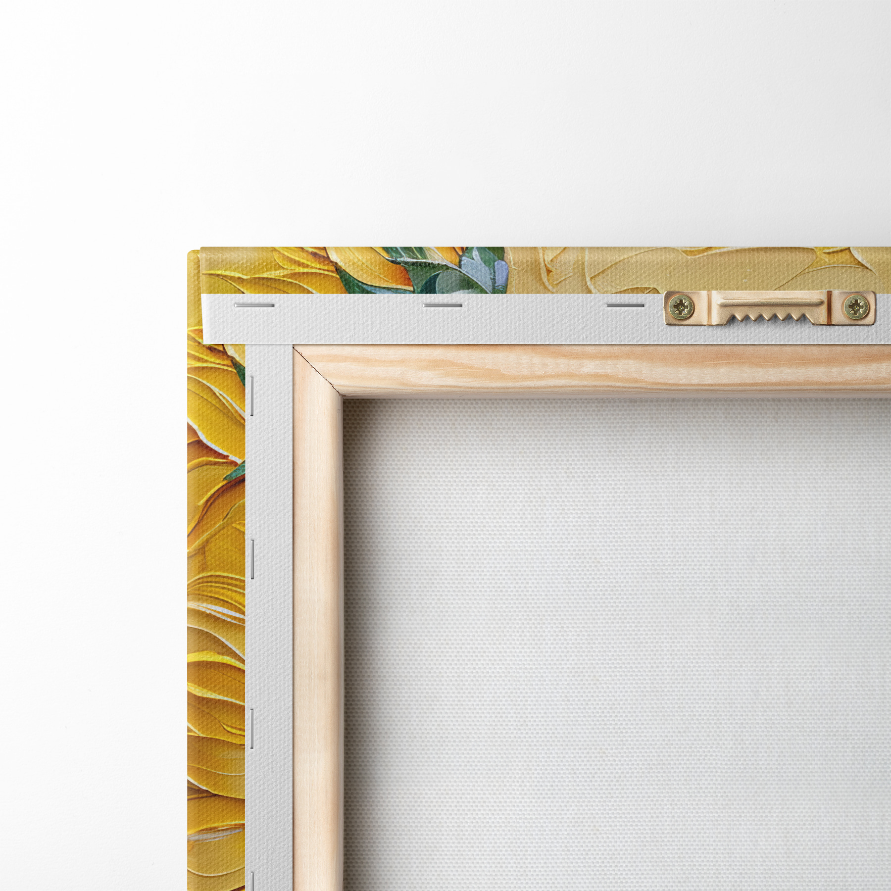Vendemos cuadros en bastidor: se trata de un marco de madera sobre el que se extiende el lienzo. Este cuadro no necesita marco; puedes colgarlo directamente en la pared.