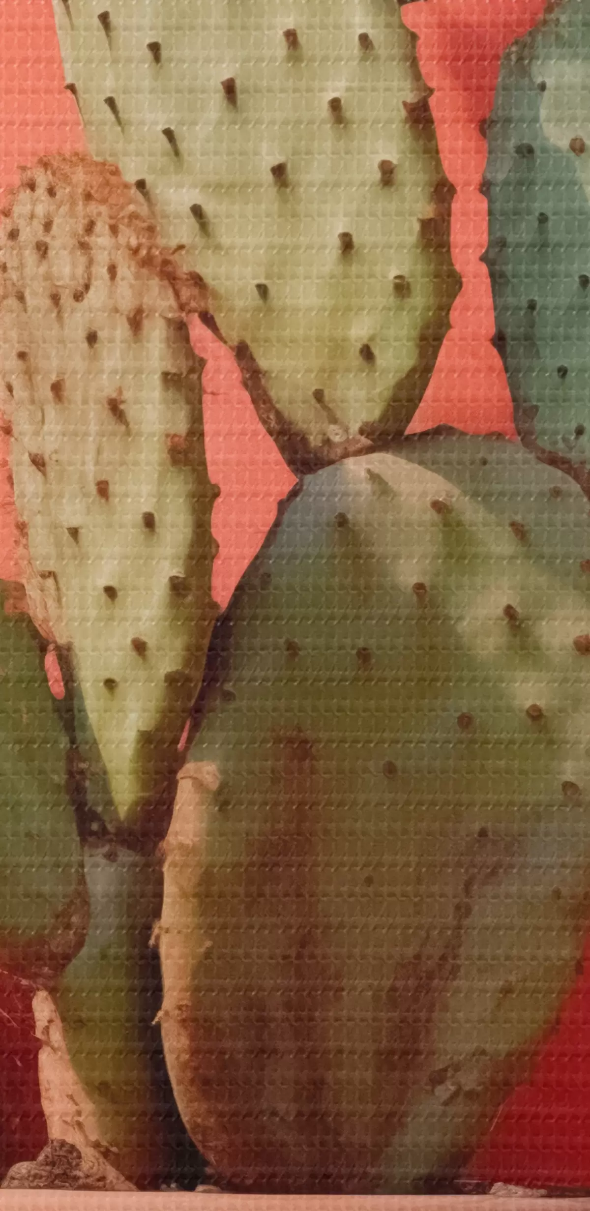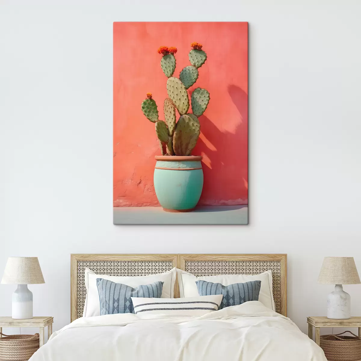 murales Cactus en una maceta ligera contra una pared rosa rojiza s40800