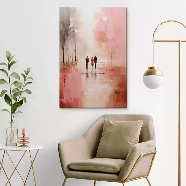 murales La gente caminando en el parque abstracto, de color rojo rosa s40802