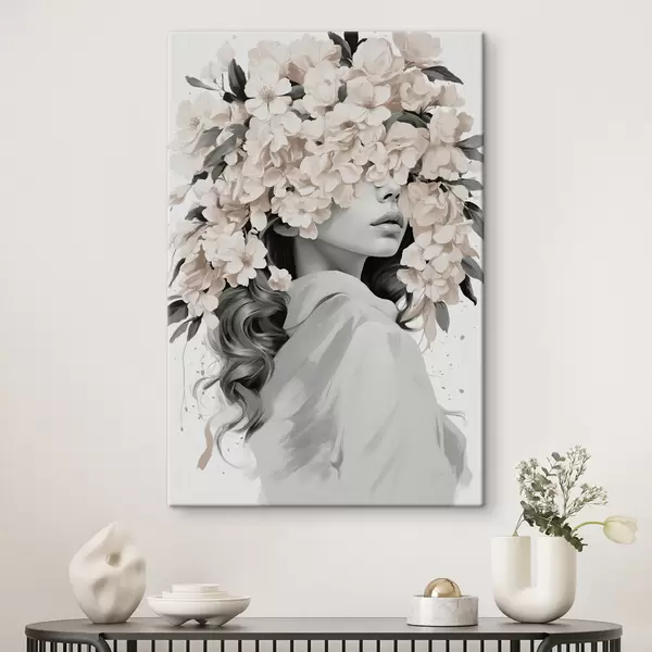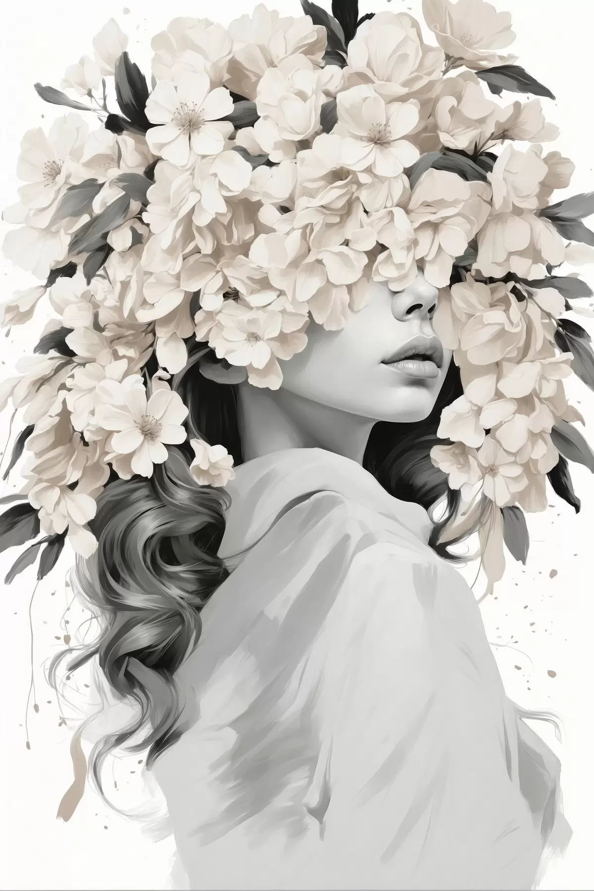 murales Chica con flores en la cara en colores blanco y negro s40849