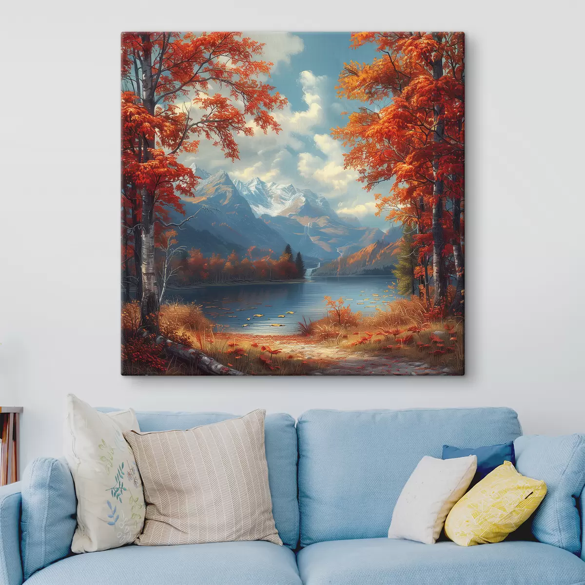 murales Paisaje otoñal con montañas de fondo cerca de un estanque s40903