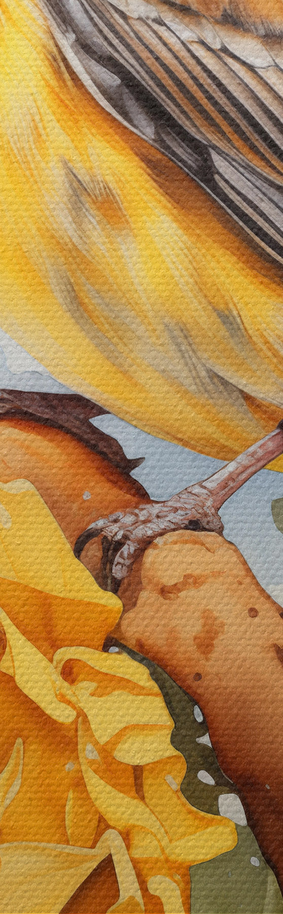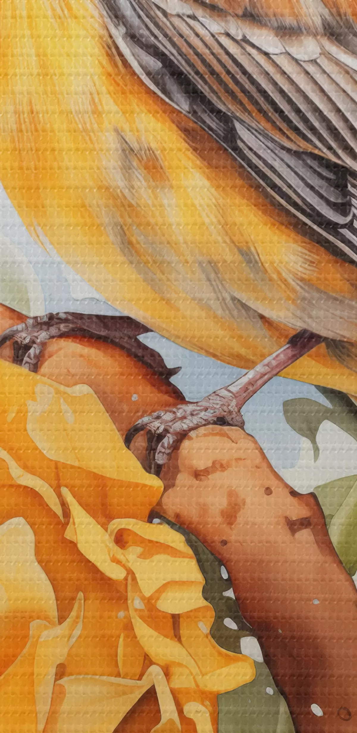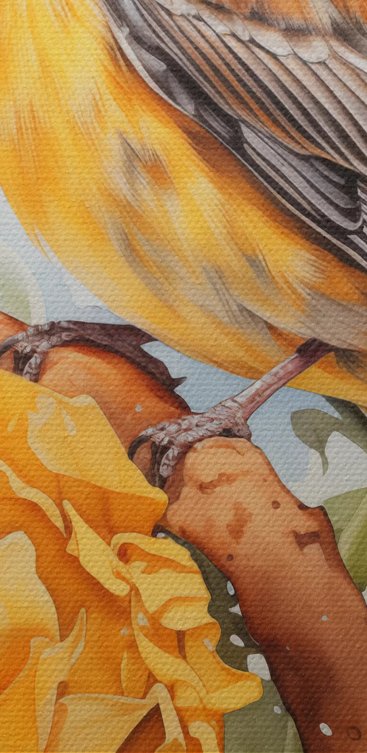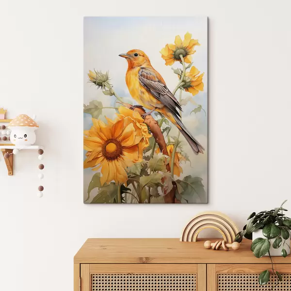 murales Pájaro amarillo sentado en girasol acuarela s41015