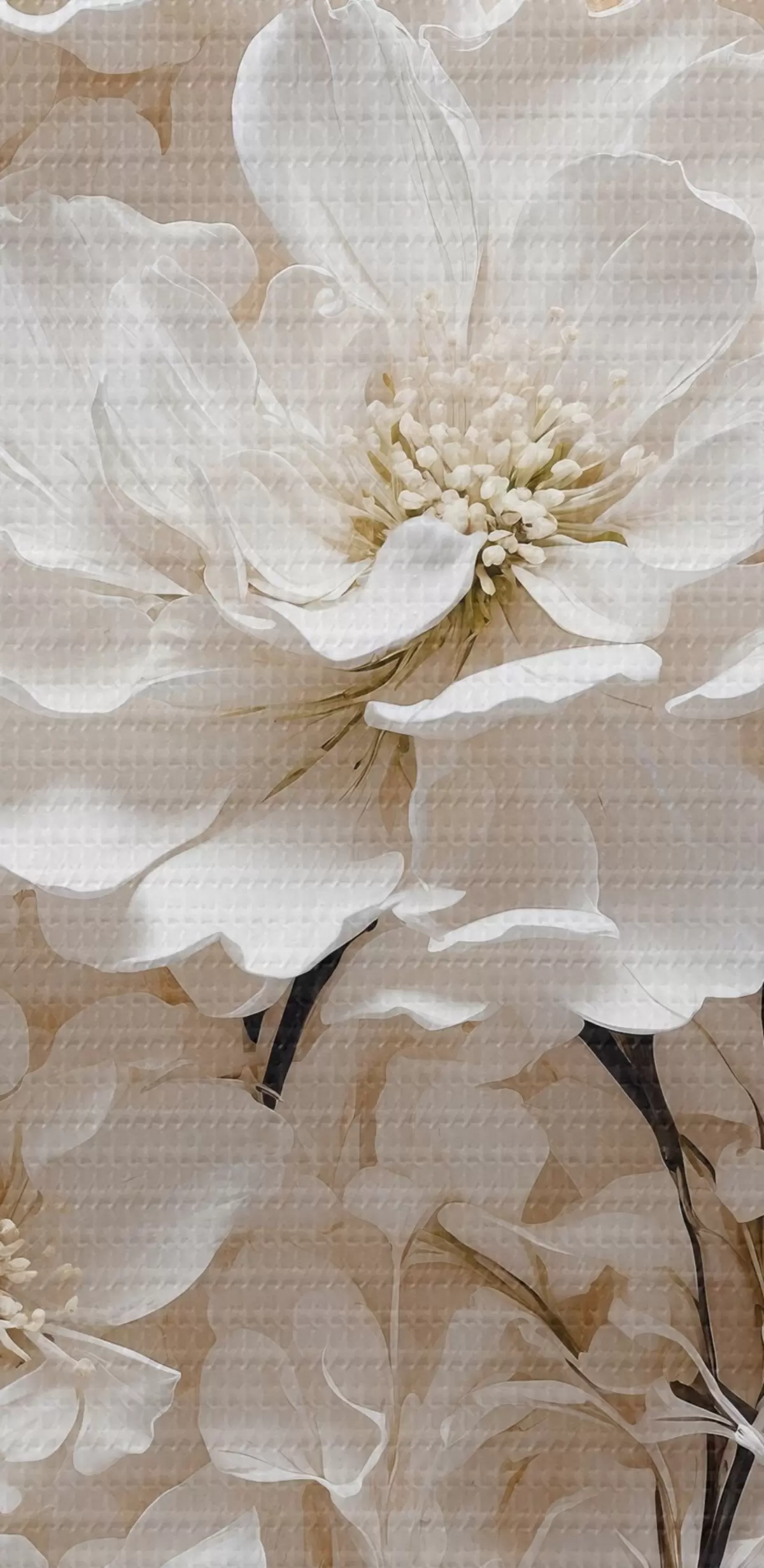 murales Flores blancas sobre fondo blanco-naranja s41042