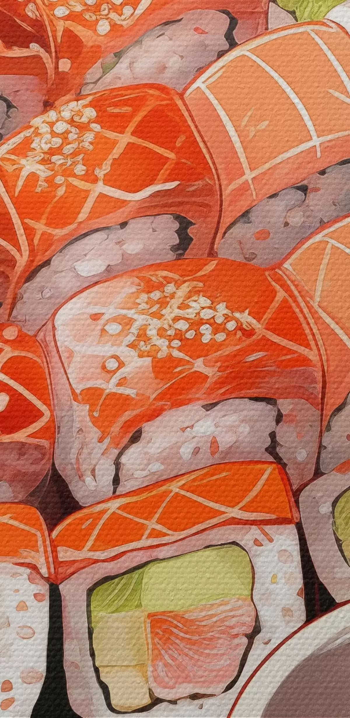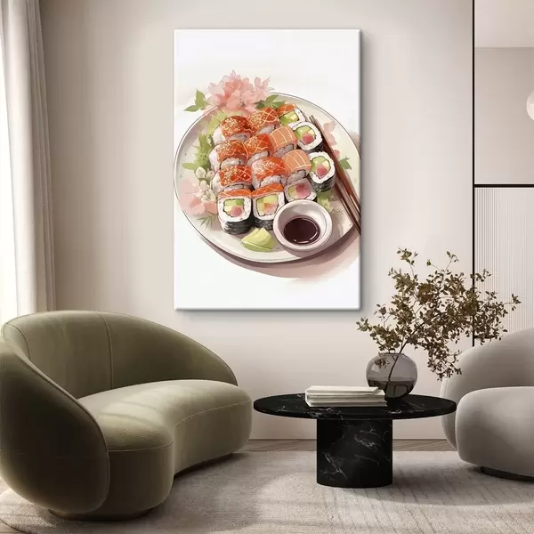 murales Acuarela plato de sushi, salmón, delicioso s41180