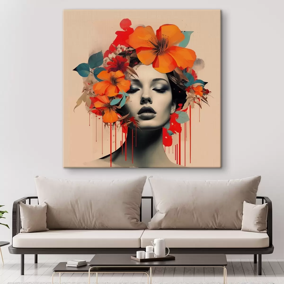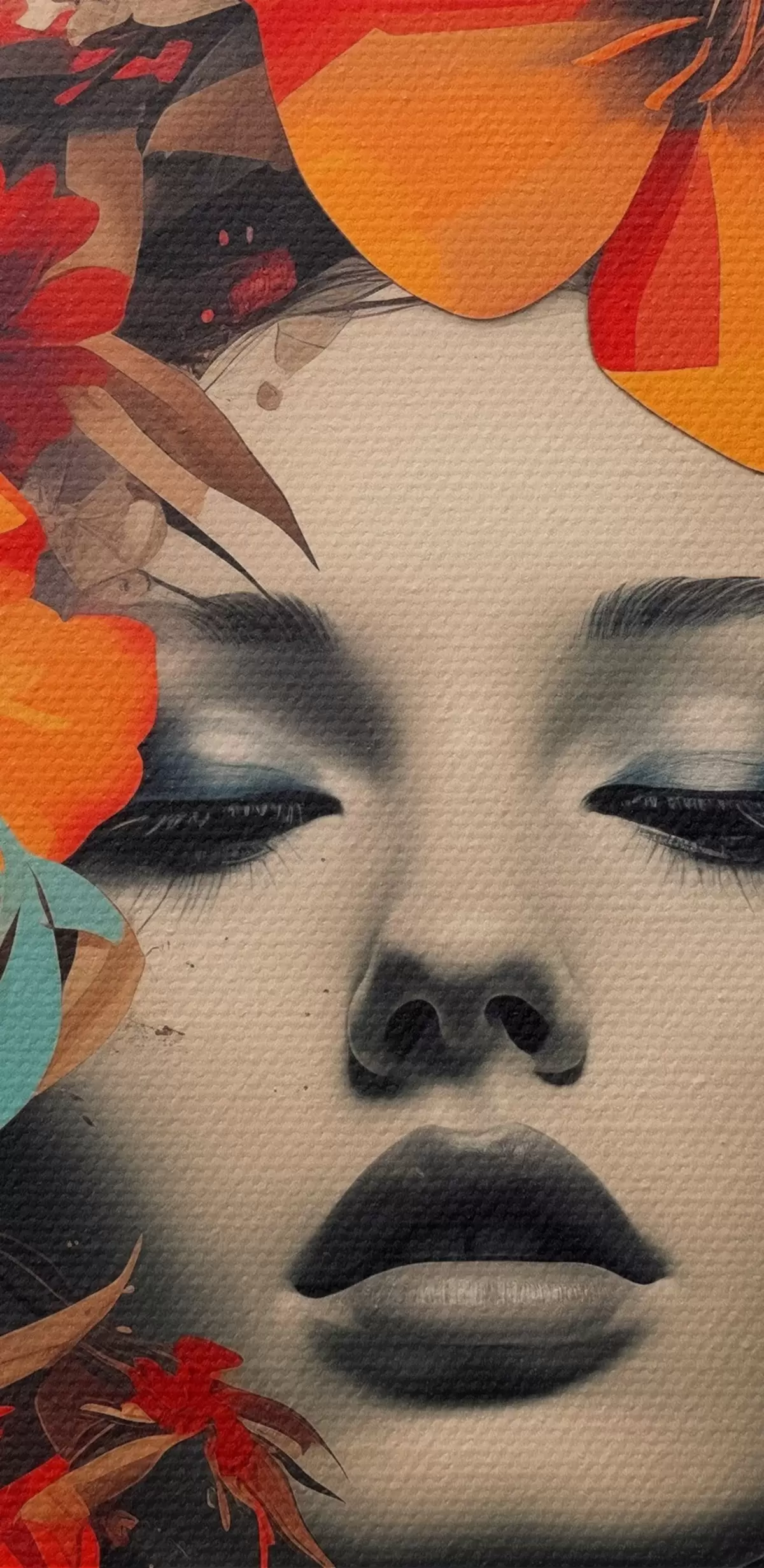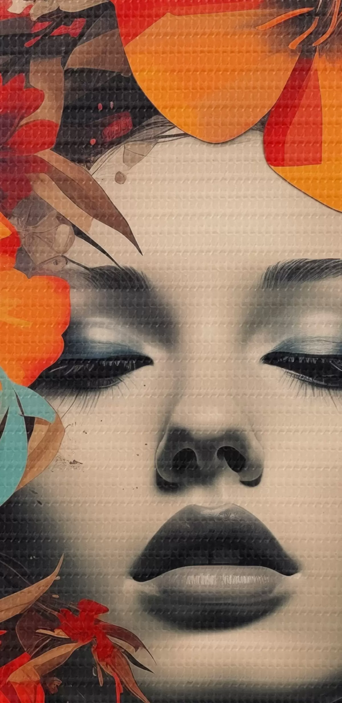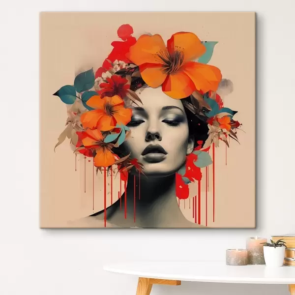 murales Retrato de niña en estilo collage con flores s41271