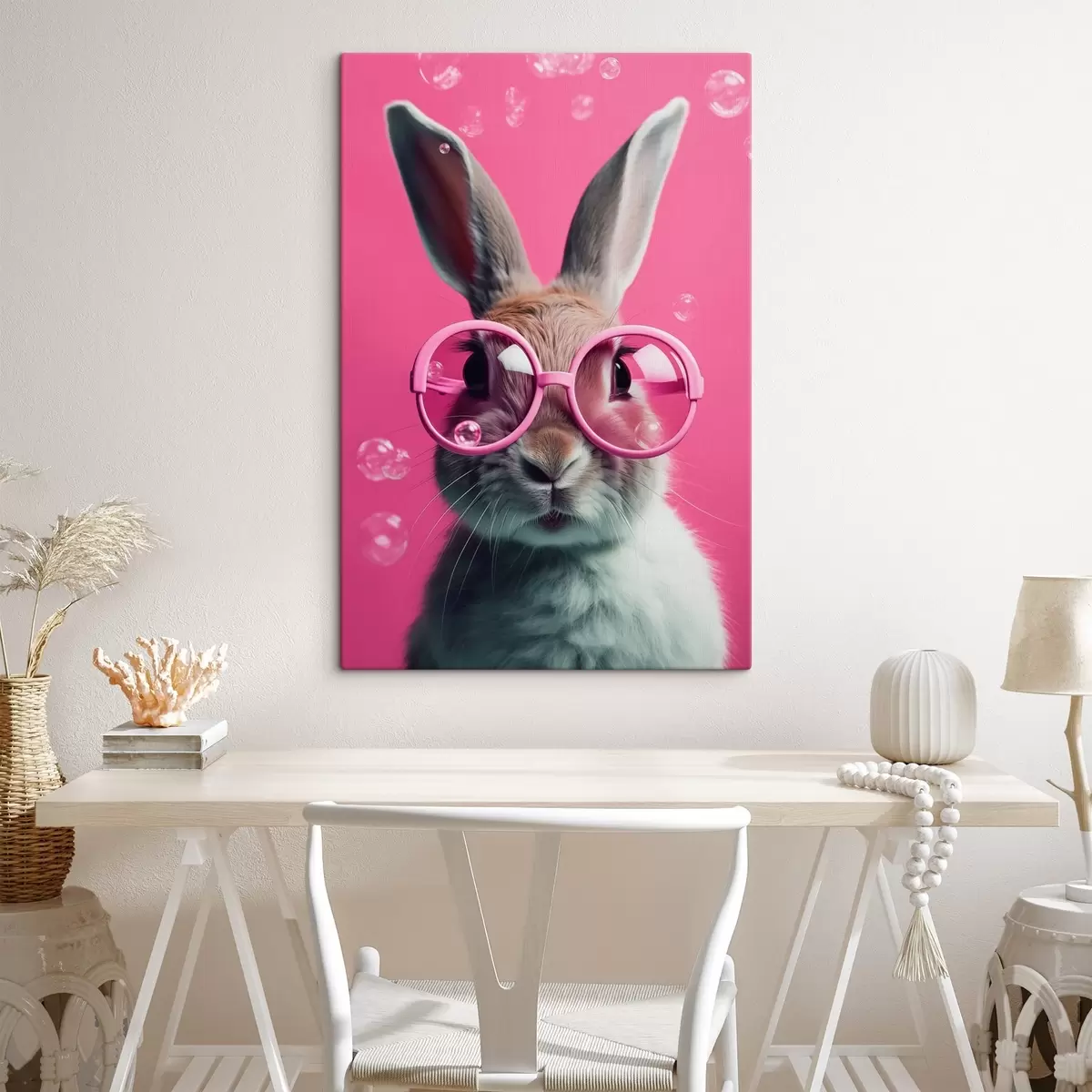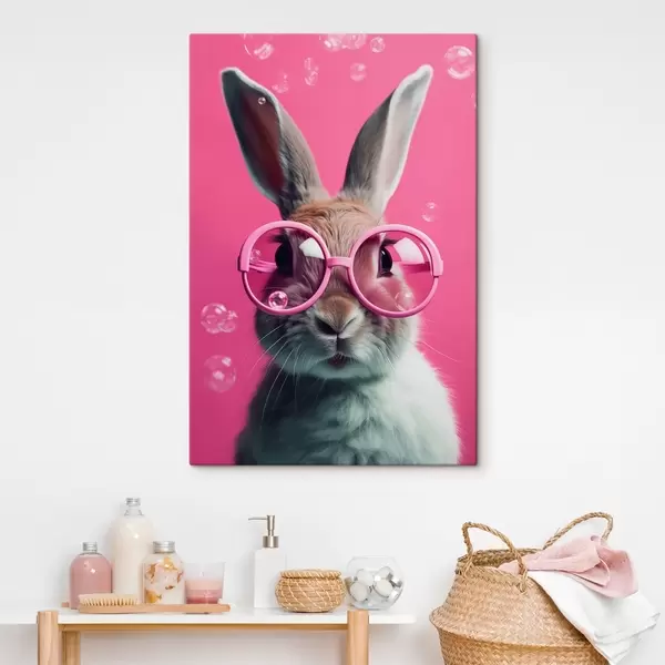 murales Conejo con gafas rosas sobre fondo rosa s41280