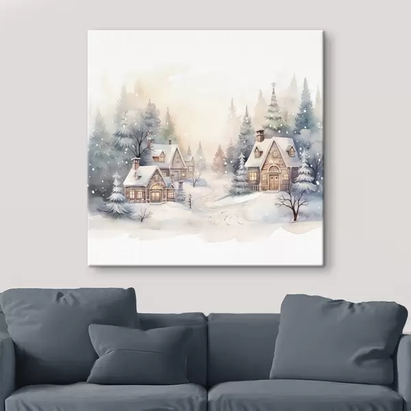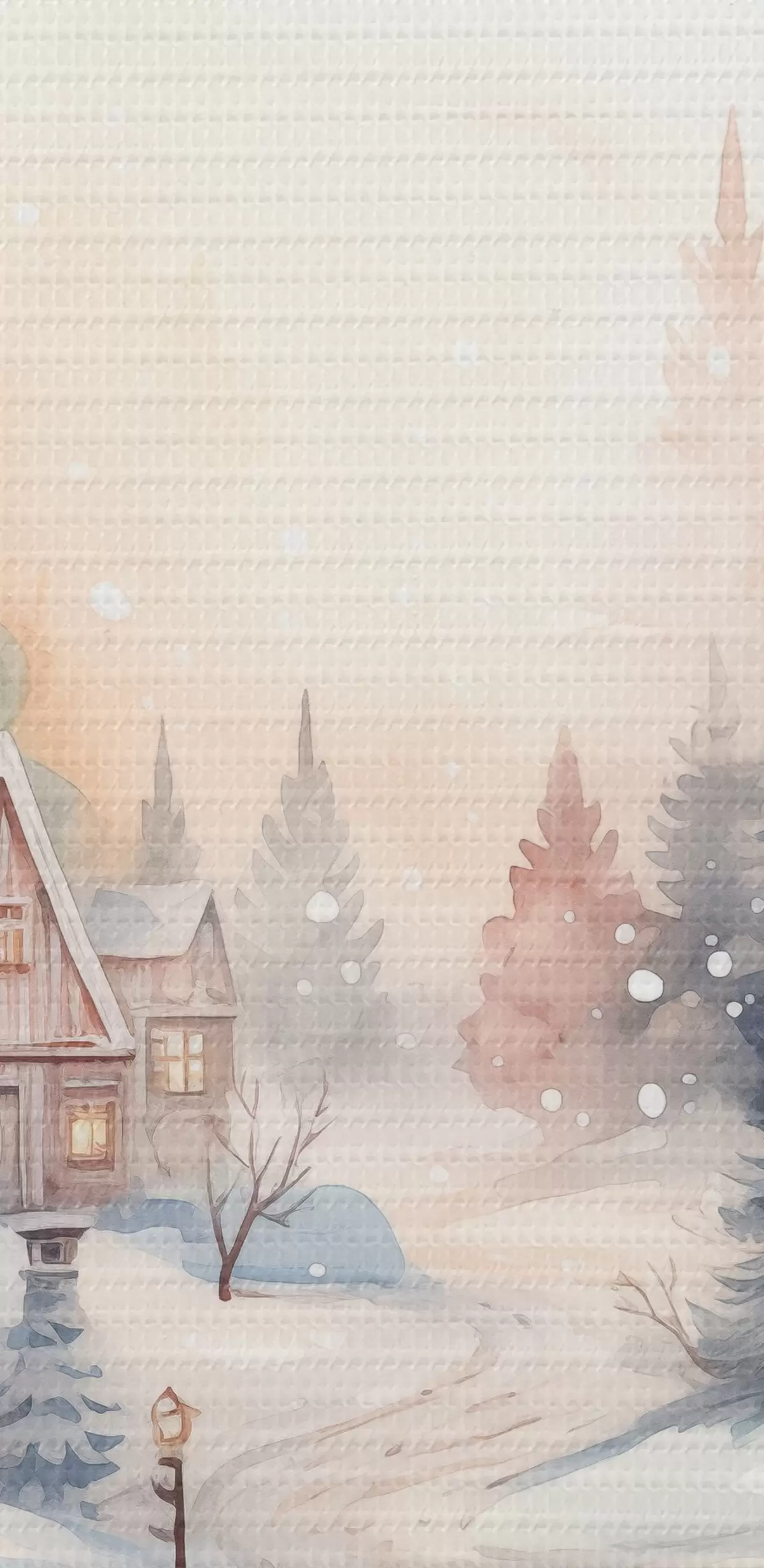 murales Paisaje de invierno, bosque de pinos, hermosas casas, acuarela, susnet s41390