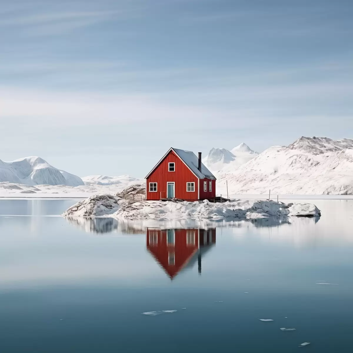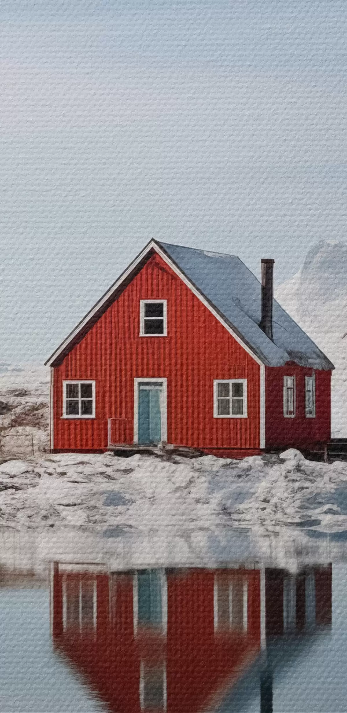 murales Paisaje invernal minimalista casa roja junto al lago s41437