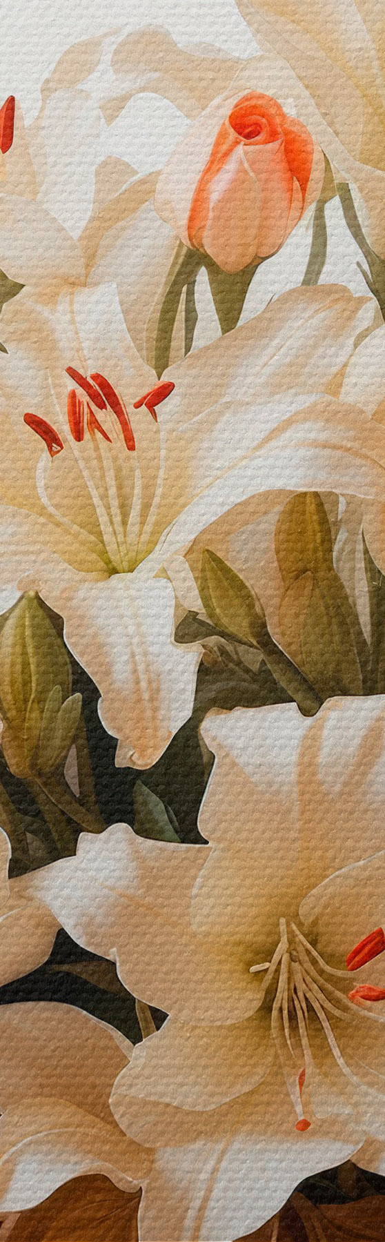 Hay tres tipos de material disponibles para pedidos: Lienzo Económico - material denso y duradero para impresión digital, idéntico al lienzo de pintor, superficie impermeable, reproducción realista de los detalles, material de grano medio. Lienzo Premium - la textura se asemeja a la de un lienzo de pintor (pequeños hilos entrelazados). Reproducción suave y detallada de la imagen sobre una superficie mate. Eco-Premium - tejido 100% algodón de alta calidad. Gracias a las fibras naturales de algodón, el material es duradero y resistente al desgaste. Excelente reproducción del color y el detalle.