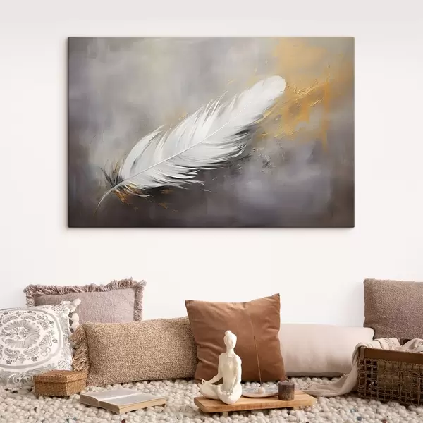murales Pluma blanca sobre fondo gris s41557