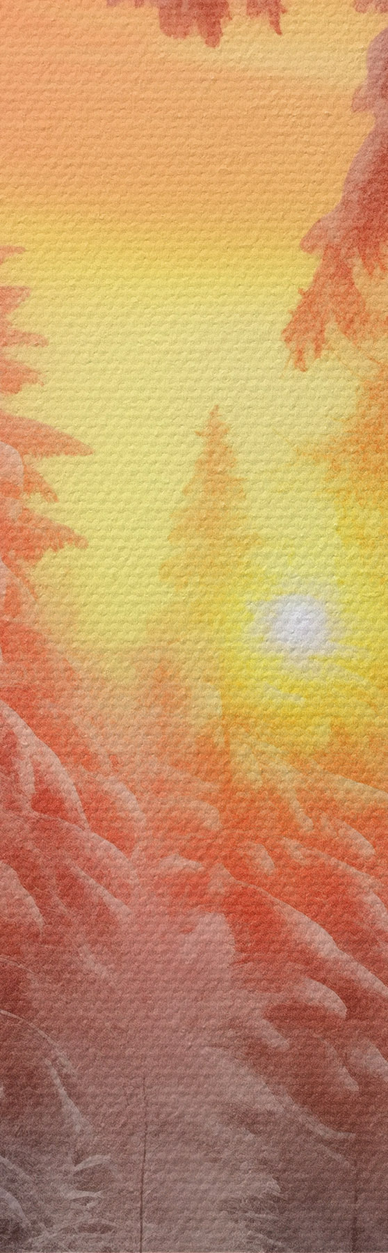 murales Un camino en el bosque de invierno, nieve, pinos, colores del atardecer s41639