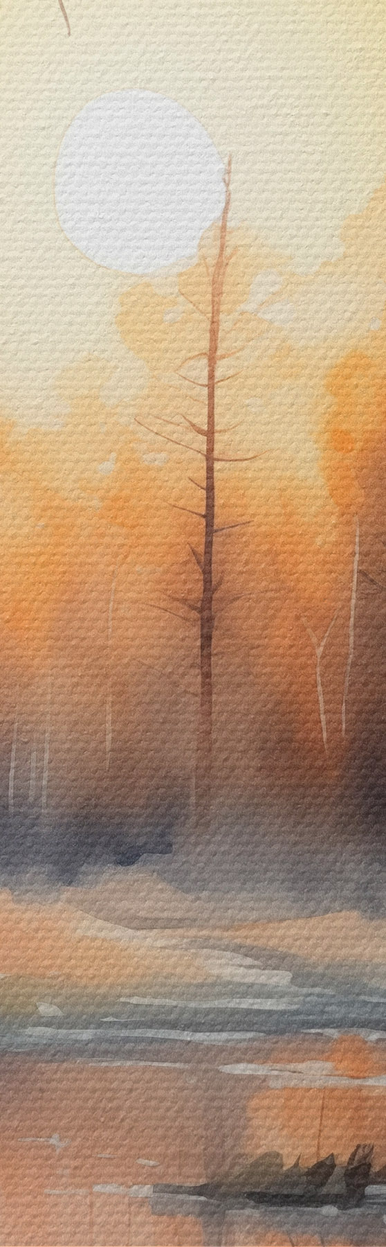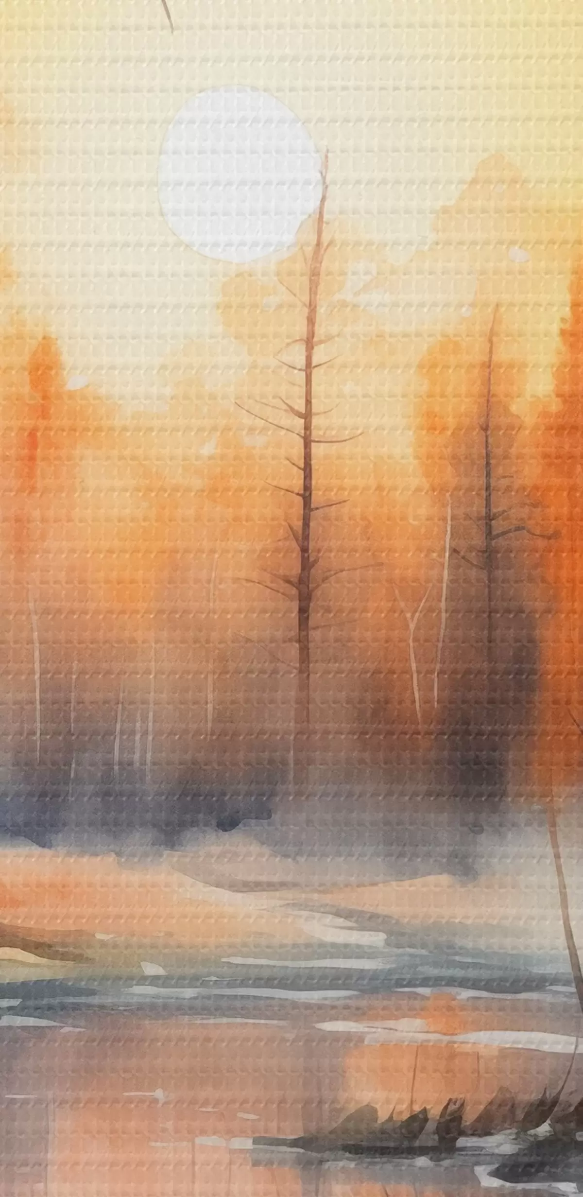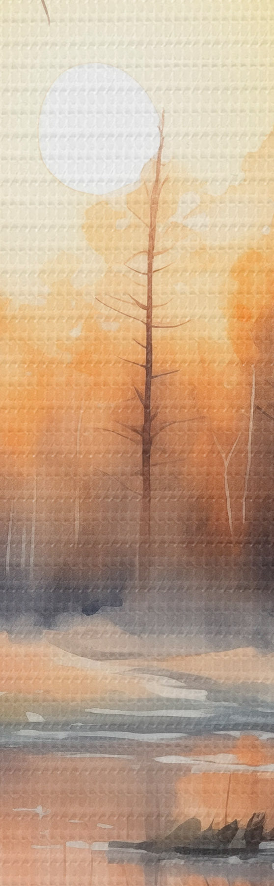 murales Lago en el bosque, acuarela, colores de otoño, niebla, cielo al atardecer s41642