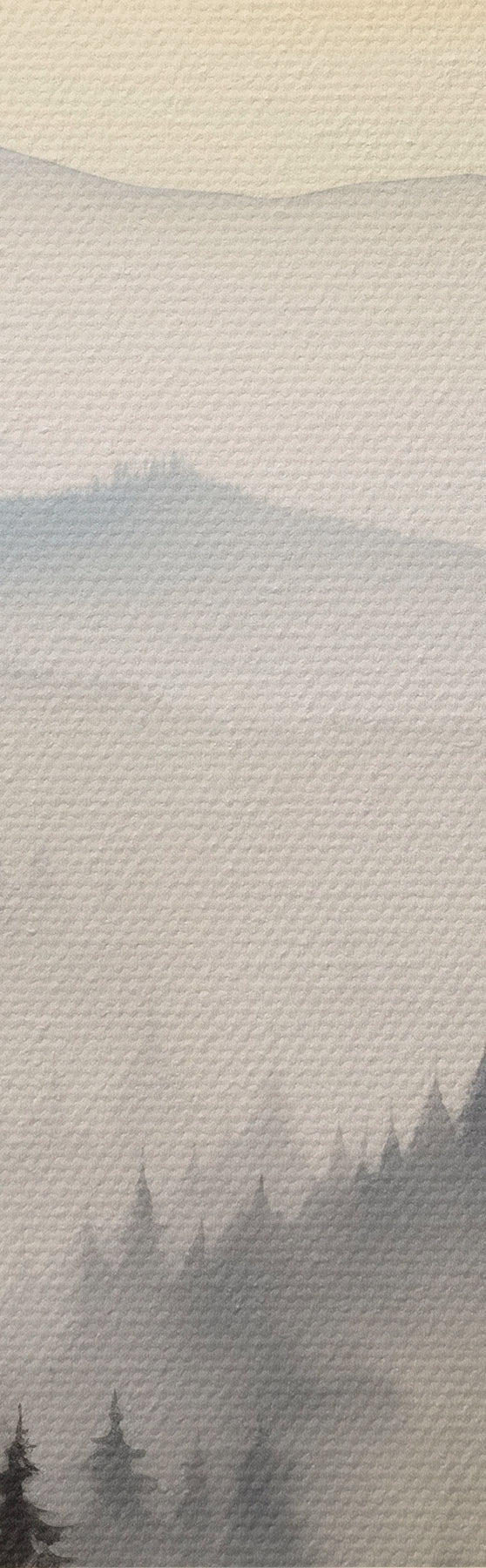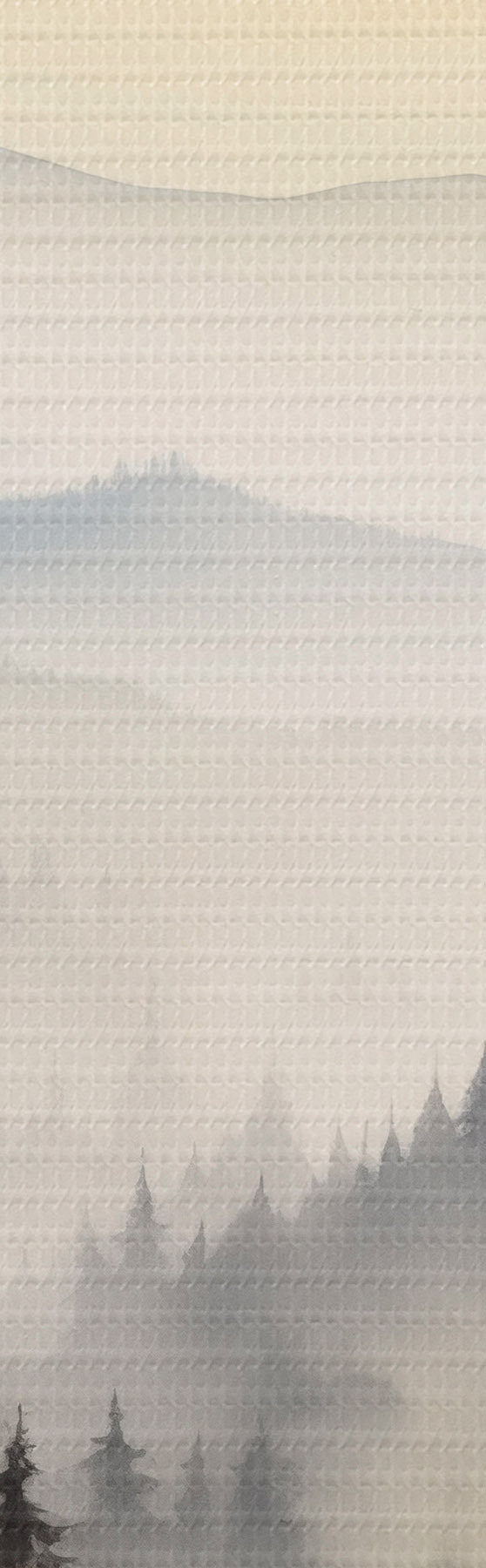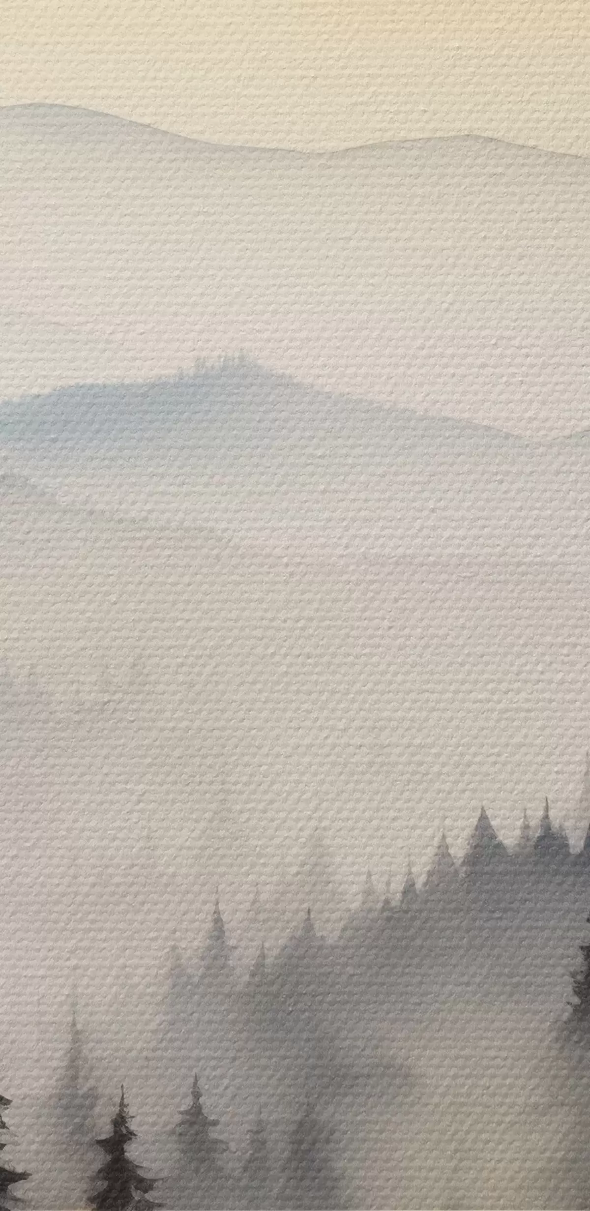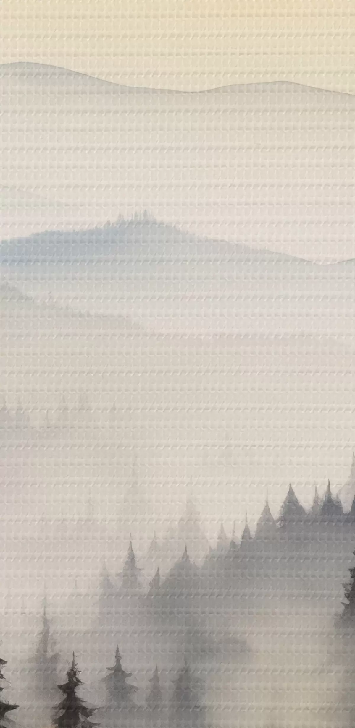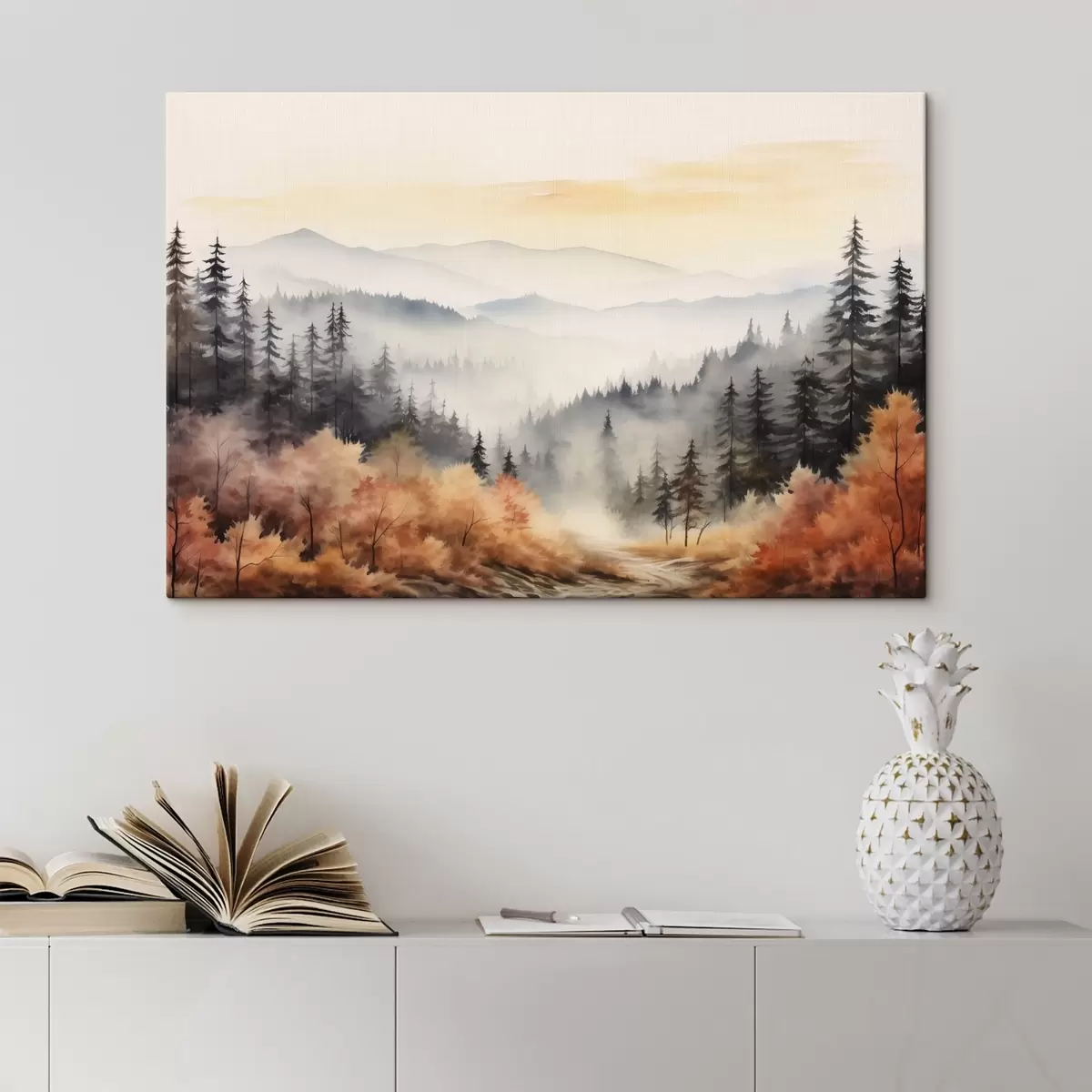 murales Hermosas montañas de niebla, bosque de otoño, acuarela s41646