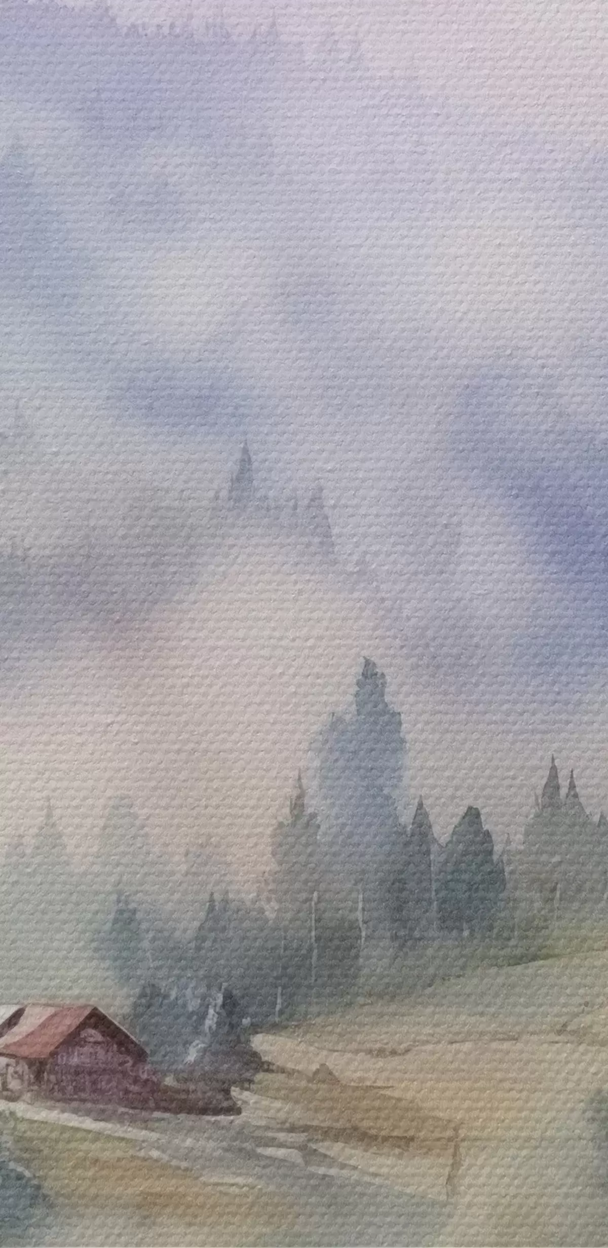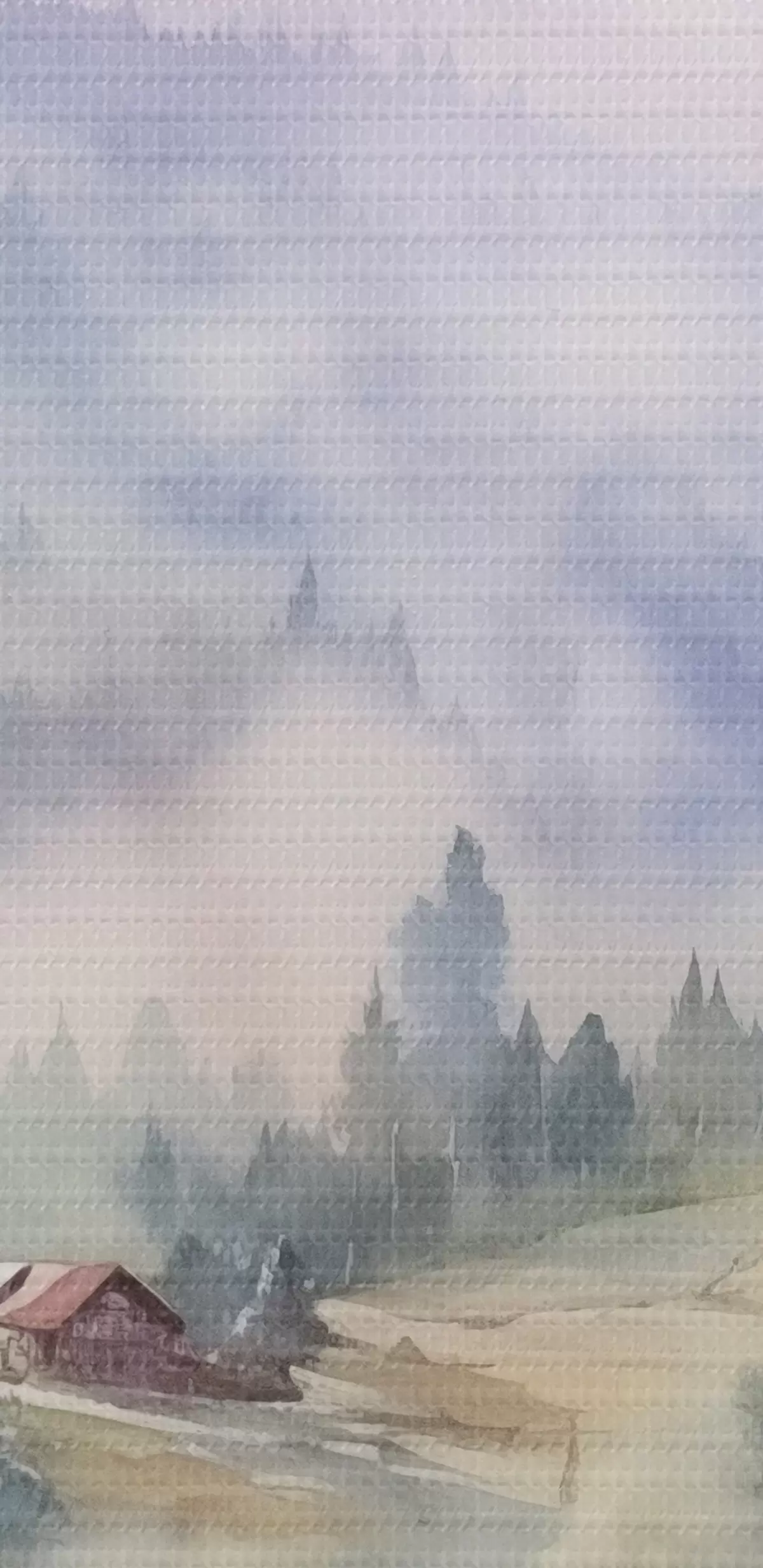 murales Hermosas montañas, paisajes de bosques brumosos, acuarela, pueblo s41649