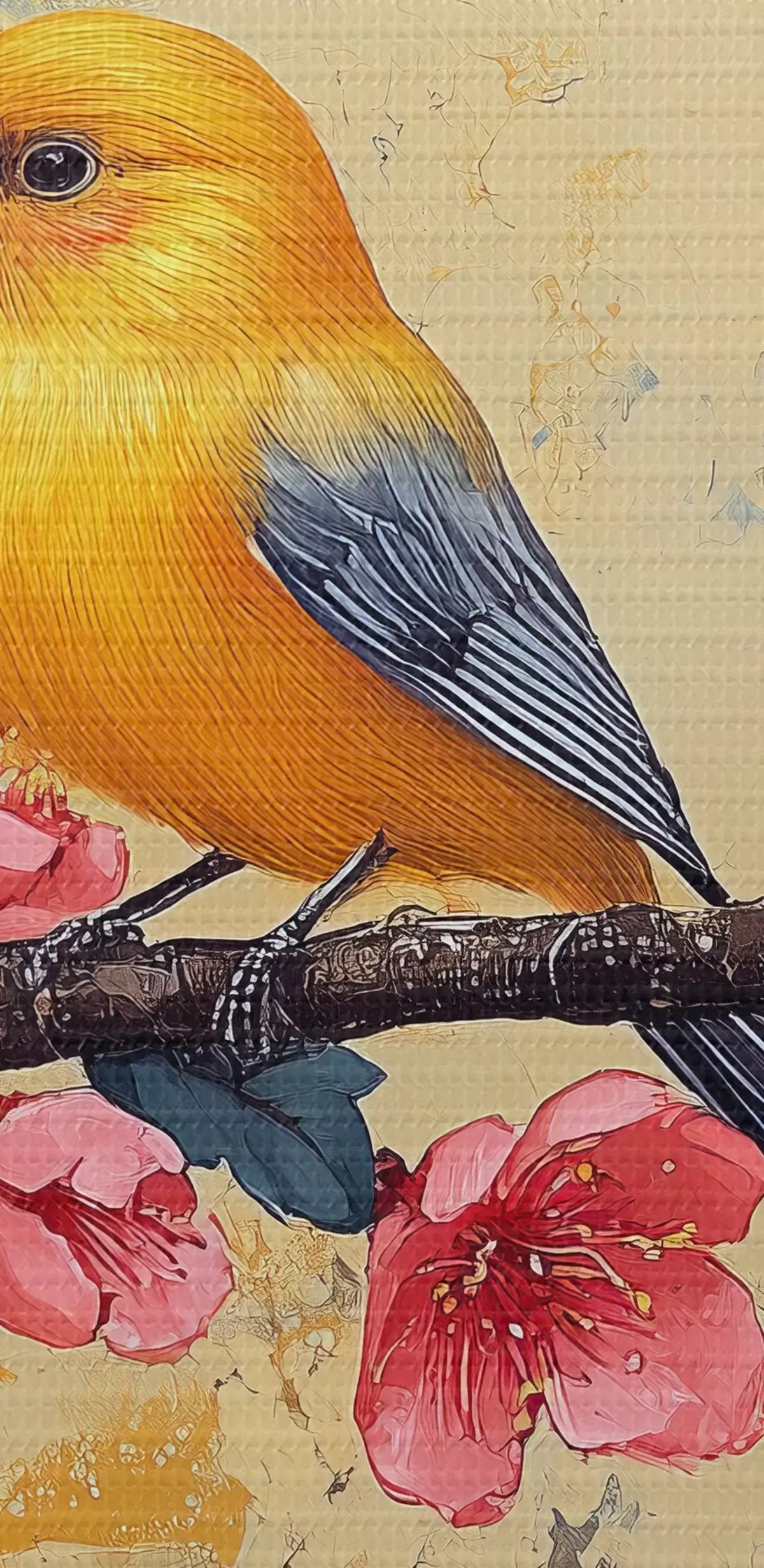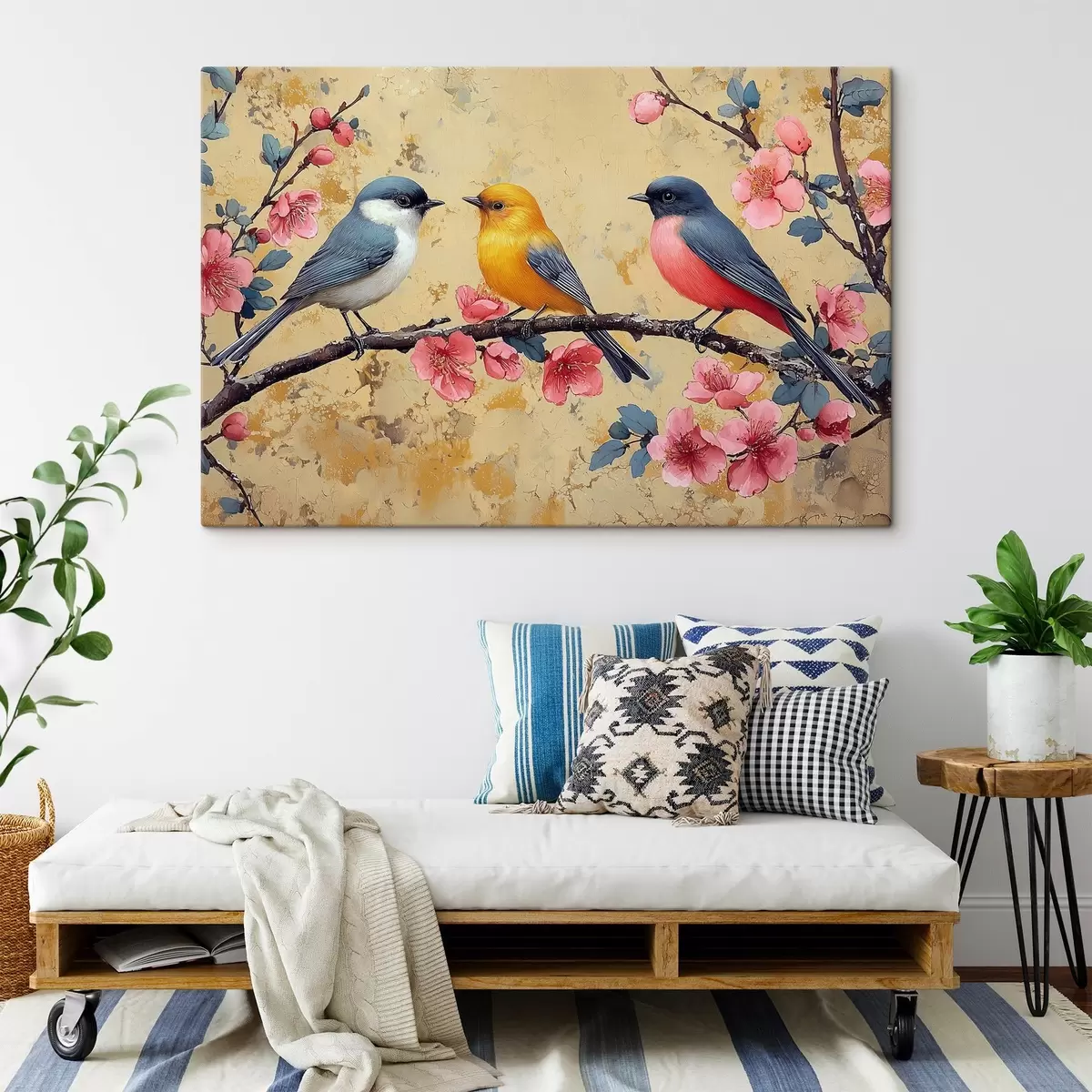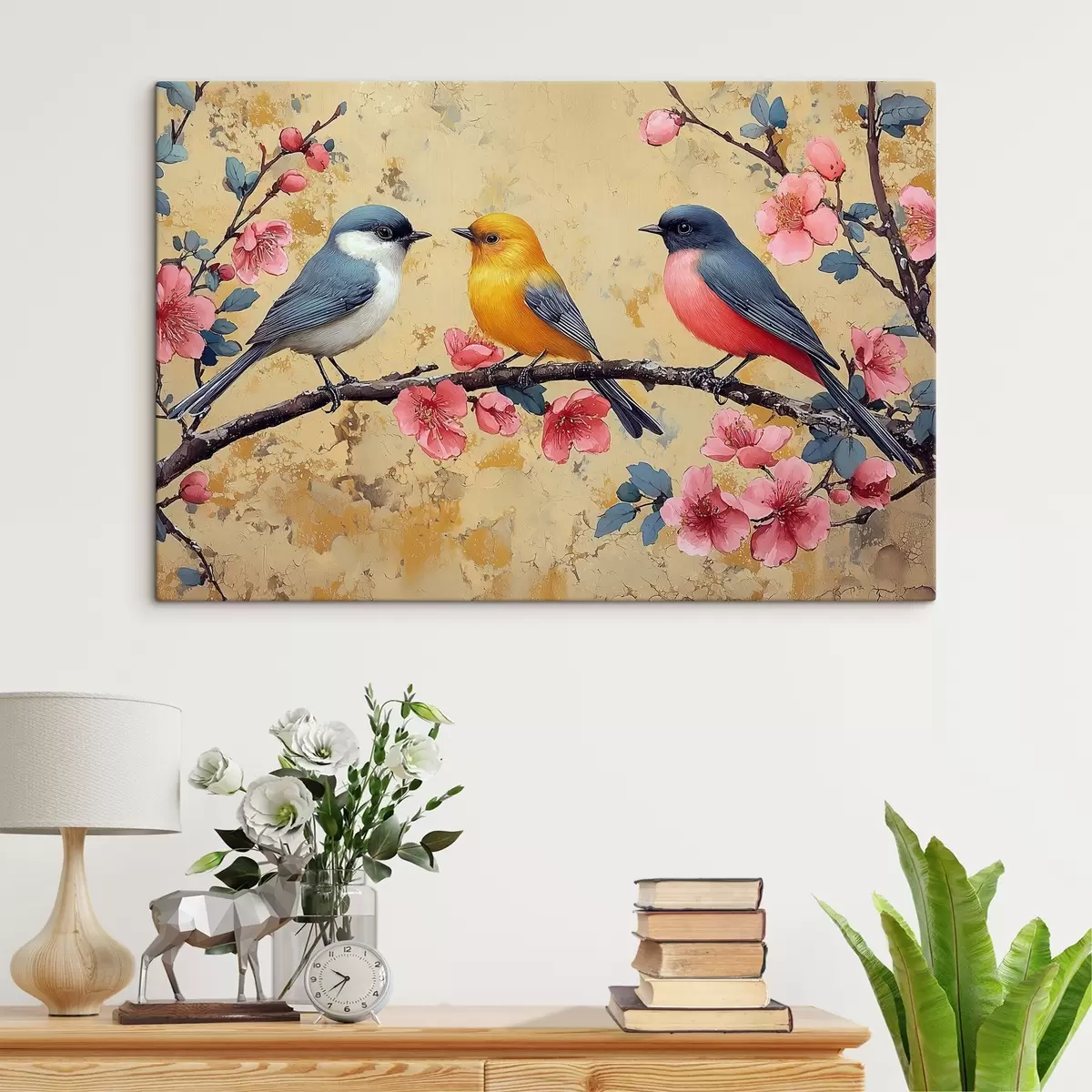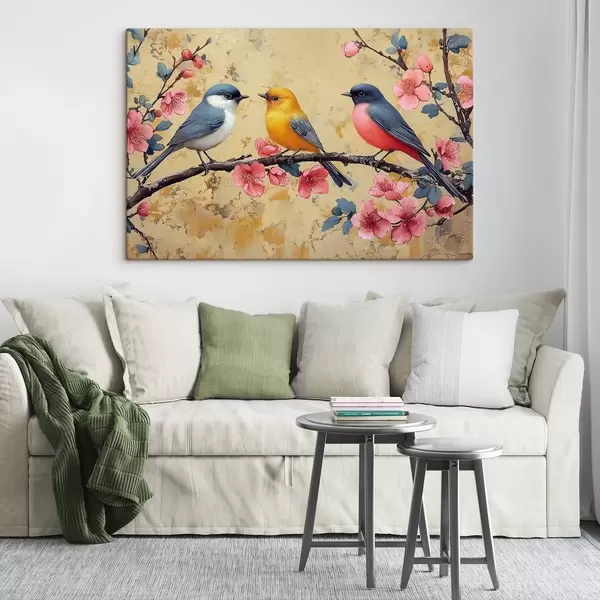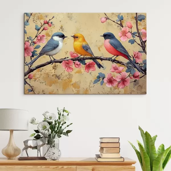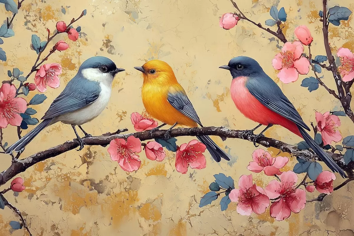 murales Gorriones en una rama de sakura al estilo de la pintura al óleo s41835