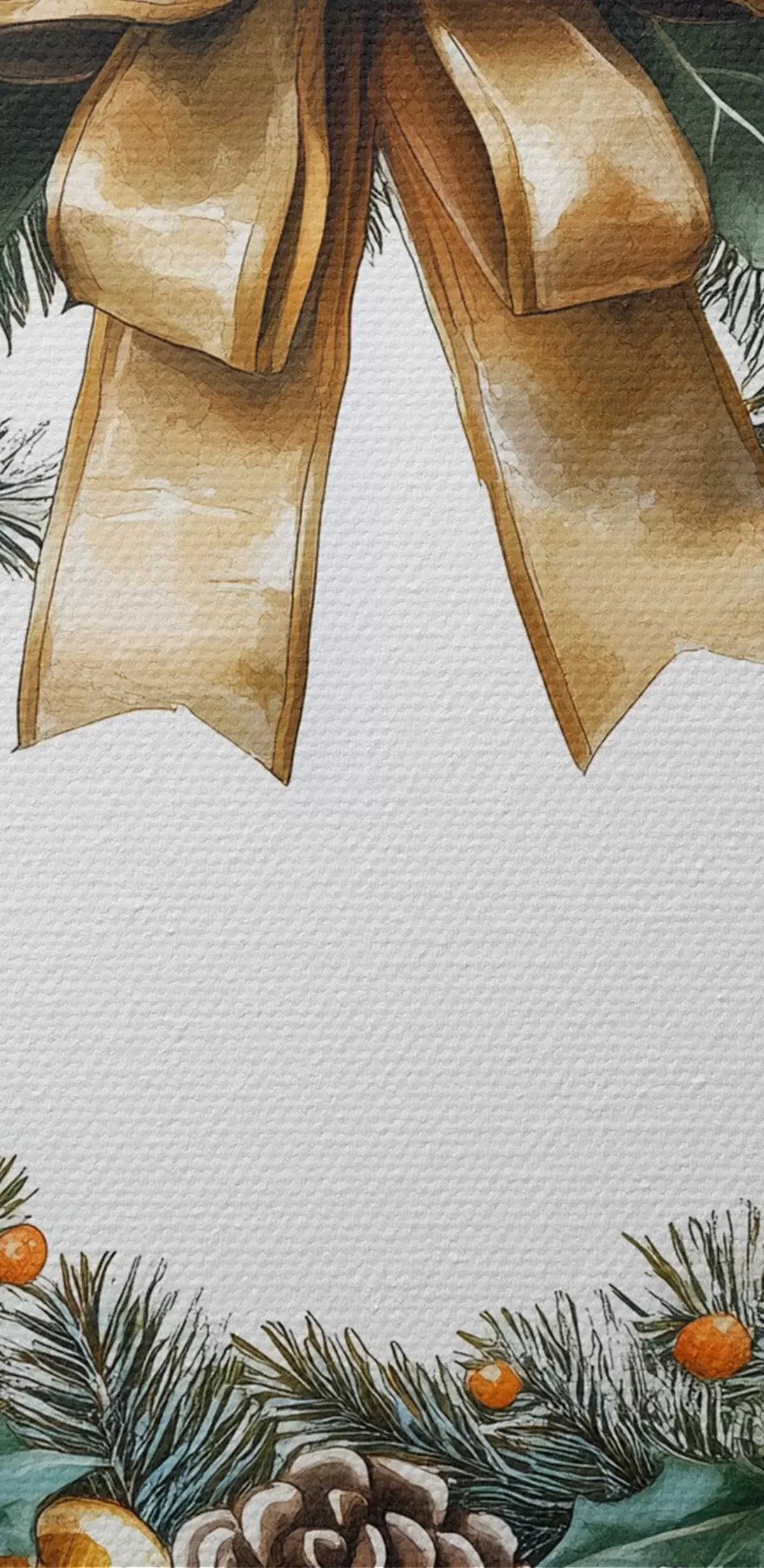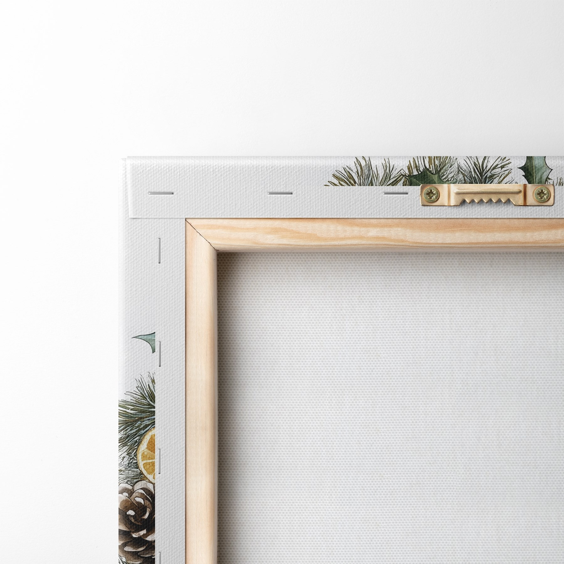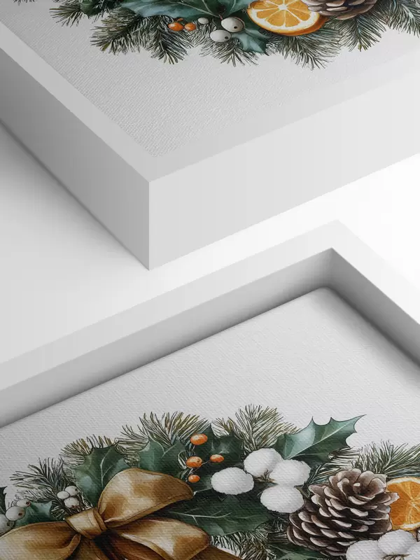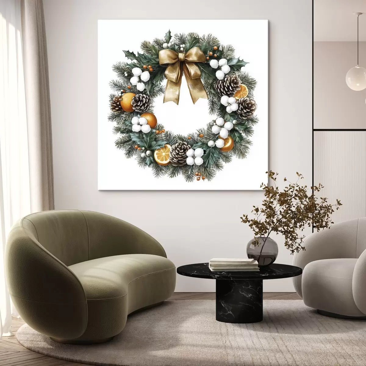 murales Corona navideña de pino con lazo, algodón, naranjas, bayas y piñas s41962